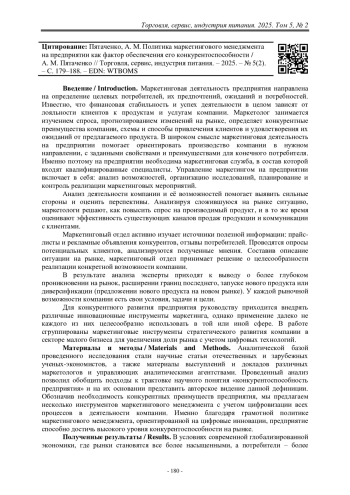 9. Пятаченко, А. М. Совершенствование маркетинговой стратегии предприятия как элемент антикризисного управления малым бизнесом [Текст] / А. М. Пятаченко // Вестник Башкирского института социальных технологий. – 2024. – № 2(63). – С. 79–83.