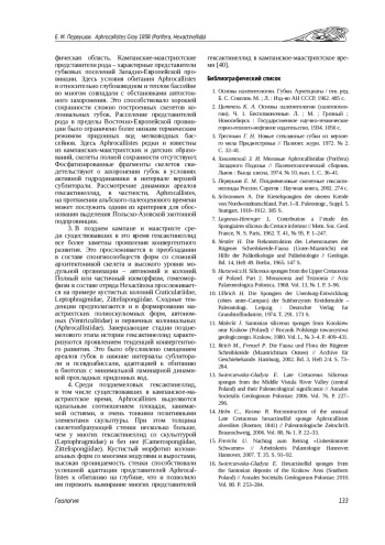 11. 	Malecki J. Santonian siliceous sponges from Korzkiew near Krakow (Poland) // Rocznik Polskiego towarzystwa geologicznego. Krakow, 1980. Vol. L, № 3-4. P. 409-431.