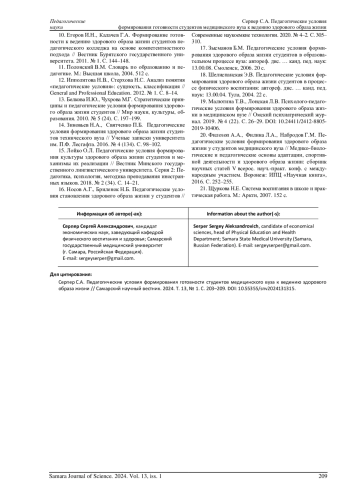 17. Зысманов Б.М. Педагогические условия формирования здорового образа жизни студентов в образовательном процессе вуза: автореф. дис. … канд. пед. наук: 13.00.08. Смоленск, 2006. 20 с. EDN: NKEFBB
