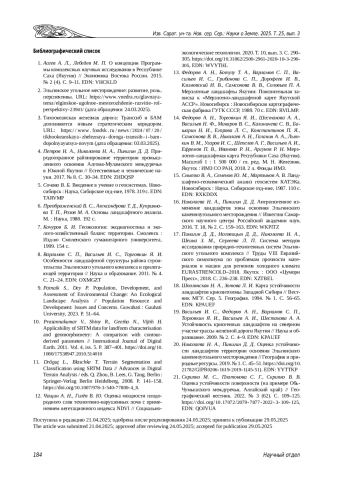 21. Скрипко М. С., Платонова С. Г., Скрипко В. В. Оценка устойчивости поверхности (на примере ОбьЧумышского междуречья, Алтайский край) // Географический вестник. 2022. № 3 (62). С. 109-125. ,. DOI: 10.17072/2079-7877-2022-3-109-125 EDN: QOJVUA