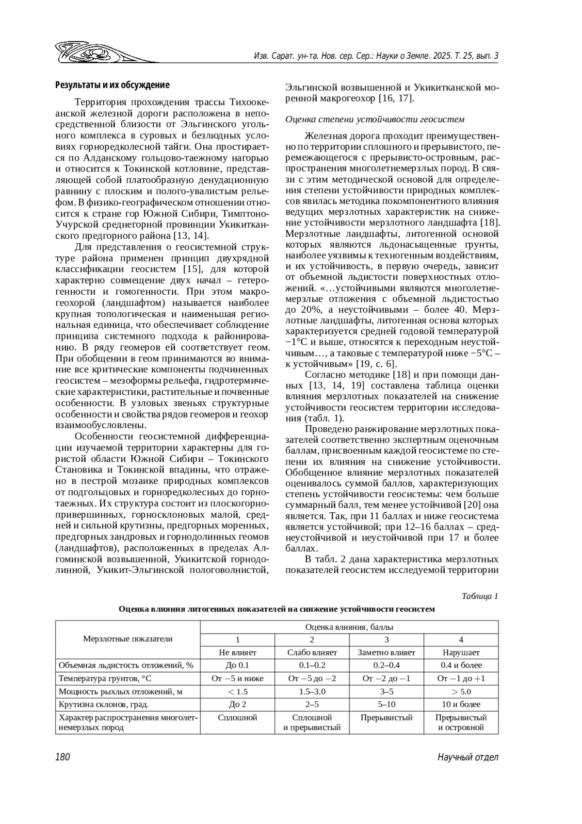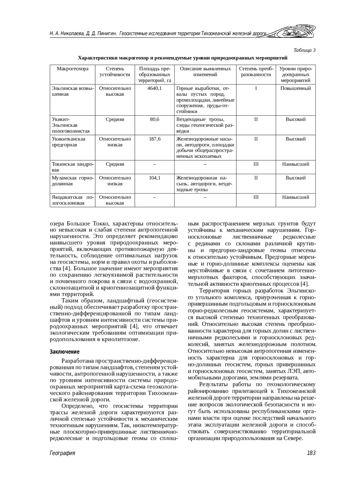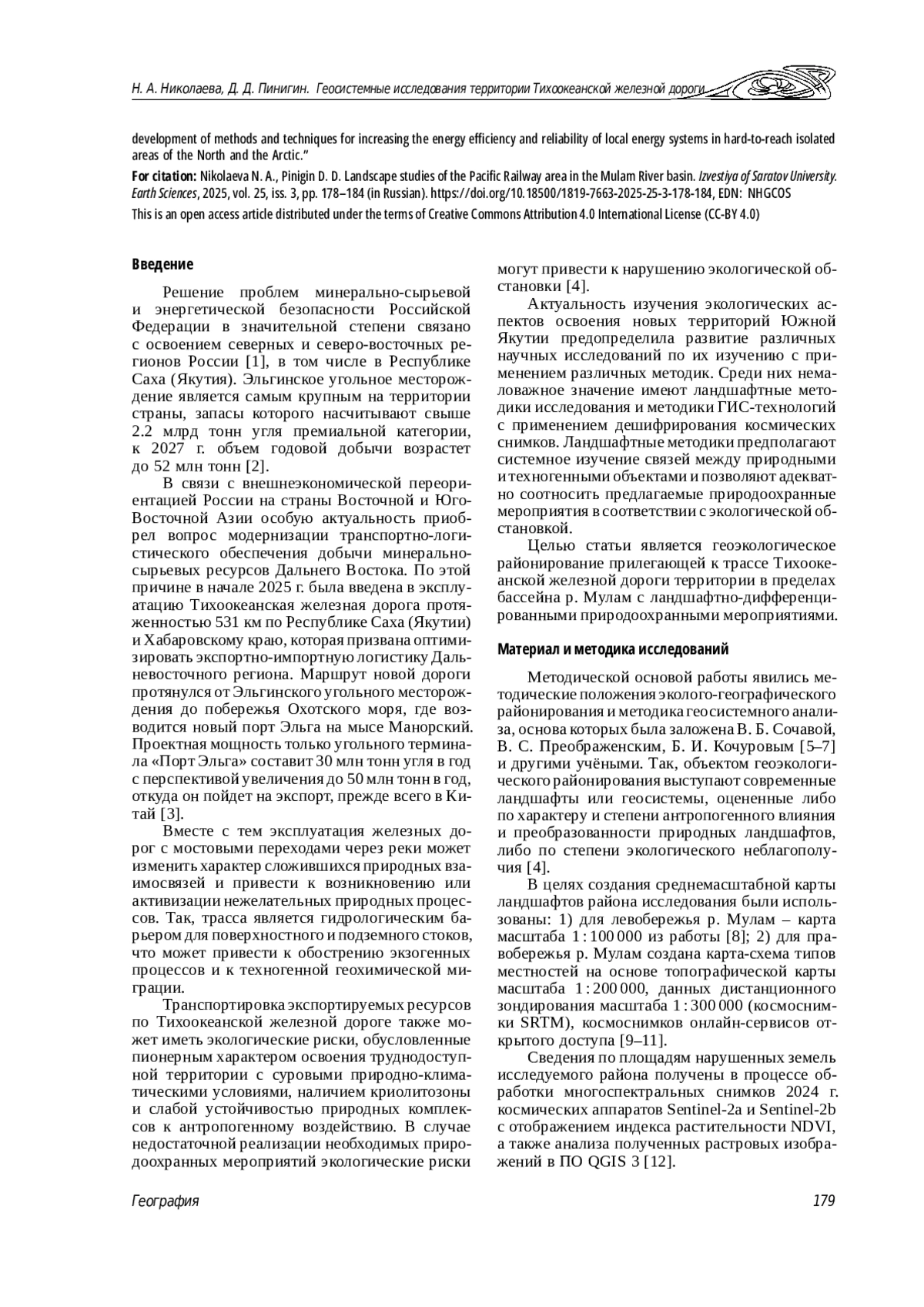 20. Николаева Н. А., Пинигин Д. Д. Оценка устойчивости ландшафтов территории освоения Эльгинского каменноугольного месторождения // География и природные ресурсы. 2019. № 1. С. 45-51. DOI: 10.21782/GIPR0206-1619-2019-1(45-51) EDN: YYTTKP