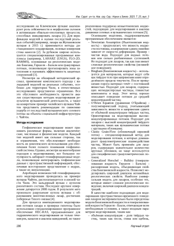7. 	Gibson S., Floyd I., Sánchez A., Heath R. Comparing single-phase, non-Newtonian approaches with experimental results: Validating flume-scale mud and debris flow in HEC-RAS // Earth Surface Processes. 2020. Vol. 46, iss. 3. P. 540-553. ,. DOI: 10.1002/esp.5044 EDN: MLYGFA