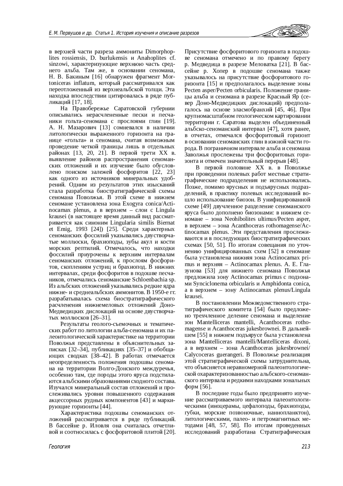 48. 	Гужиков А. Ю., Бирбина А. В., Копаевич Л. Ф., Вишневская В. С., Орлова Т. Б., Ямпольская О. Б. Опорный разрез границы альбского и сеноманского ярусов Саратовского Заволжья // Недра Поволжья и Прикаспия. Саратов: НВ НИИГГ, 2002. Вып. 31. С. 21-29.