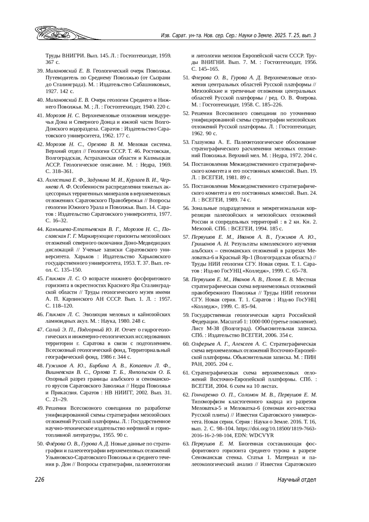 3. 	Зозырев Н. Ю. Меловатская свита (сеноман правобережного Поволжья): новые данные по стратиграфическому положению и объему // Известия Саратовского университета. Новая серия. Серия: Науки о Земле. 2006. Т. 6, вып. 1. С. 31-39. ,. DOI: 10.18500/1819-7663-2006-6-1-31-39 EDN: JVXVJB