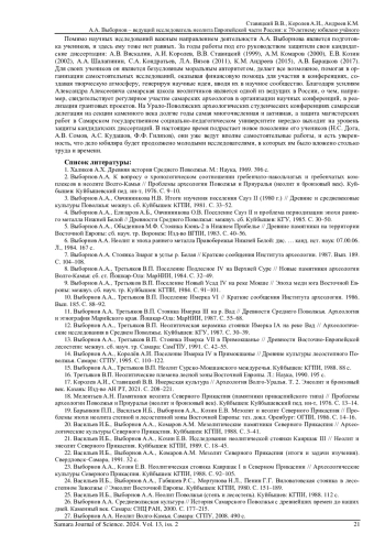 47. 	Выборнов А.А. Некоторые вопросы изучения нижневолжского неолита // Известия Самарского научного центра Российской академии наук. 2003. Специальный выпуск “Новые гуманитарные исследования”. С. 57-65.