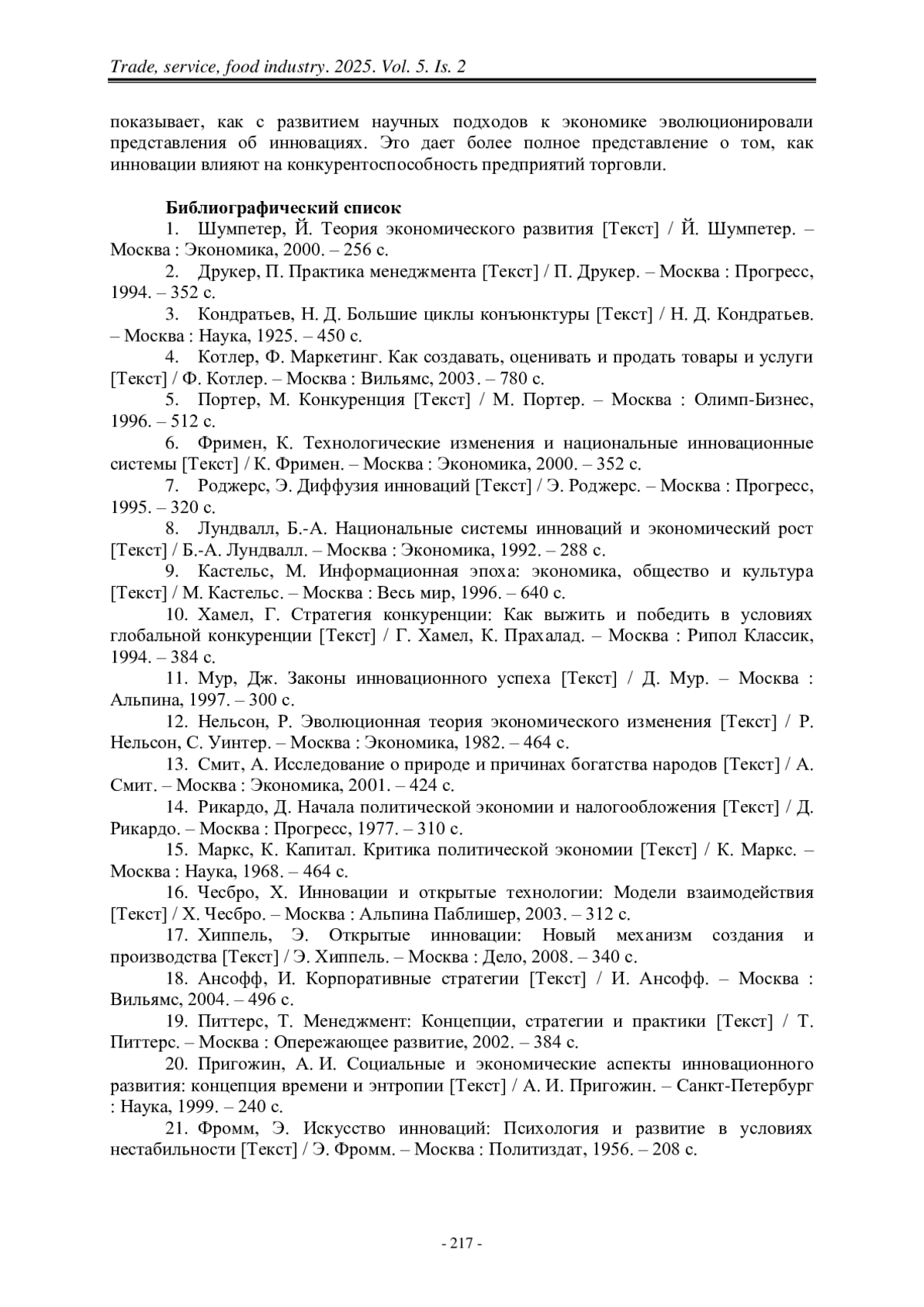 1. Шумпетер, Й. Теория экономического развития [Текст] / Й. Шумпетер. – Москва : Экономика, 2000. – 256 с.