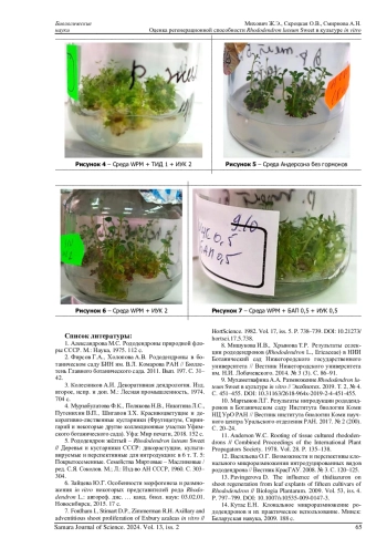 11. 	Anderson W.C. Rooting of tissue cultured rhododendrons // Combined Proceedings of the International Plant Propagators Society. 1978. Vol. 28. P. 135-138.