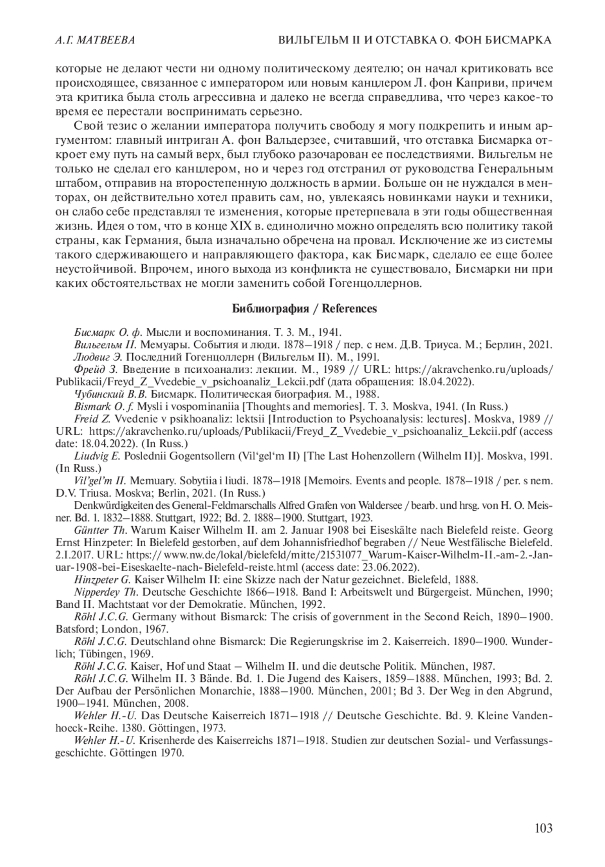 1. 	Бисмарк О. ф. Мысли и воспоминания. Т. 3. М., 1941 / Bismark O. f. Mysli i vospominaniya. T. 3. M., 1941.