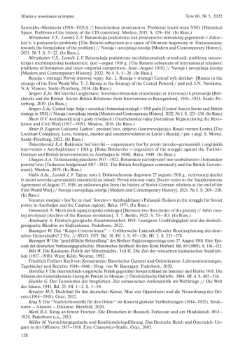41. 	Zürrer W. Die britische Intervention in Transkaspien 1918/1919 // JfGO. 1975. Bd. 23. Hf. 3. S. 344-380.