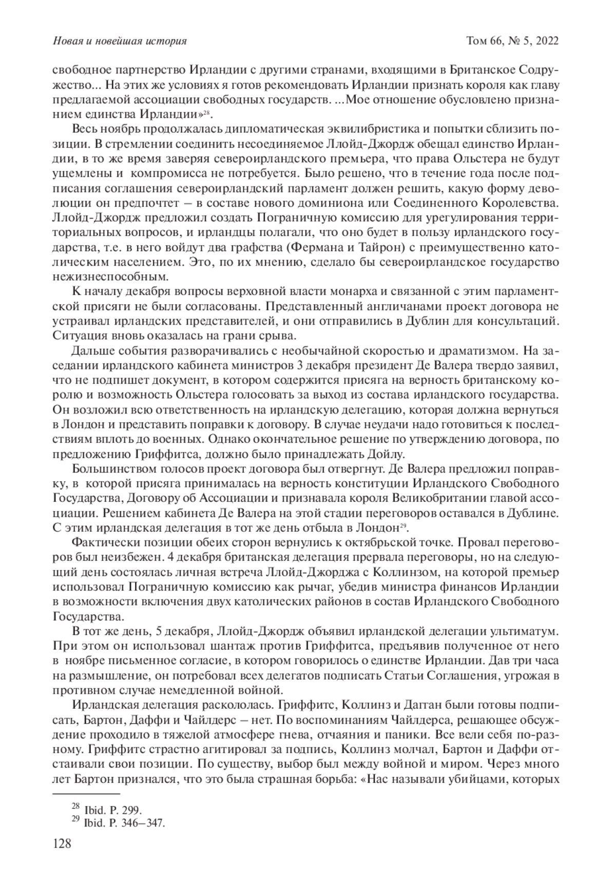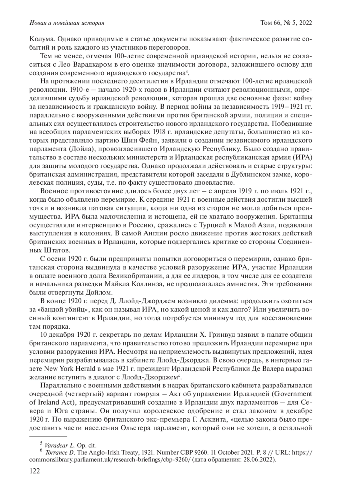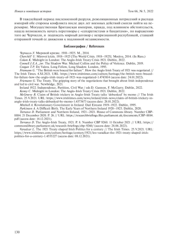 13. 	Torrance D. The Anglo-Irish Treaty, 1921. P. 8. Number CBP 9260. 11 October 2021 // URL: https://commonslibrary.parliament.uk/research-briefings/cbp-9260/ (access date: 28.06.2022).