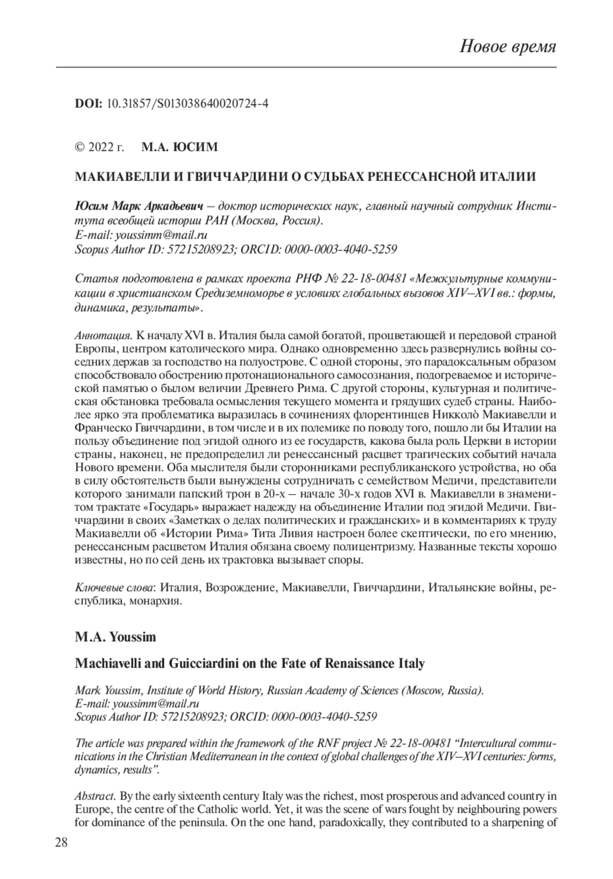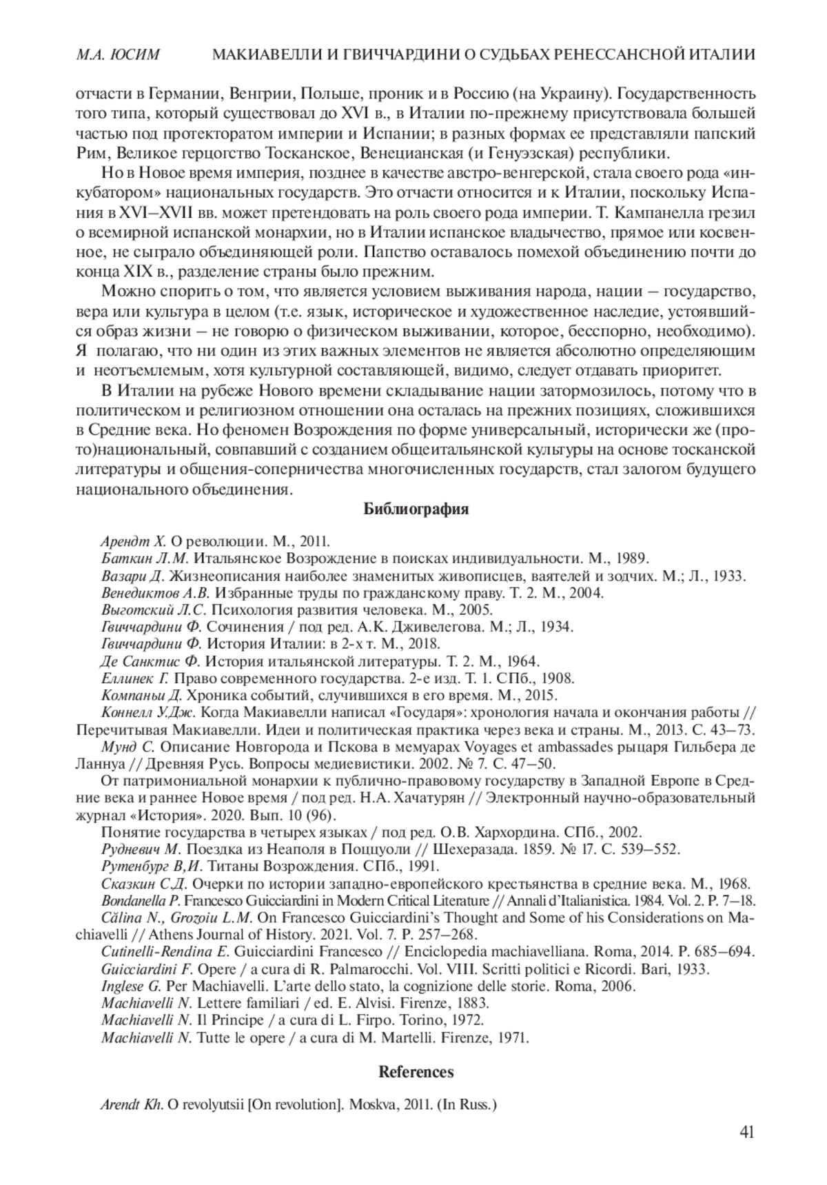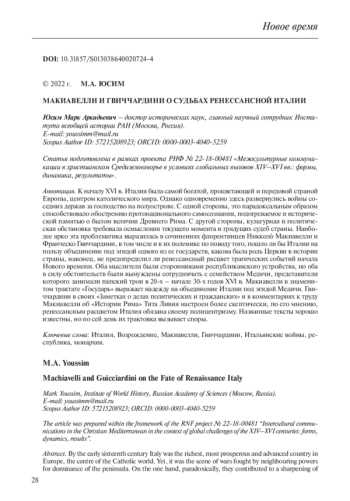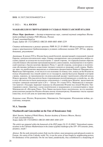 19. Călina N., Grozoiu L.M. On Francesco Guicciardini’s Thought and Some of his Considerations on Machiavelli // Athens Journal of History. 2021. Vol. 7. Р. 257-268.
