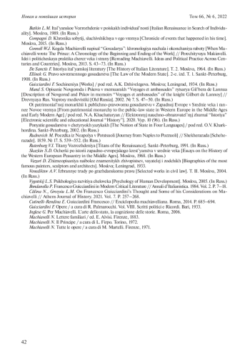 11. Коннелл У.Дж. Когда Макиавелли написал “Государя”: хронология начала и окончания работы // Перечитывая Макиавелли. Идеи и политическая практика через века и страны. М., 2013. С. 43-73.