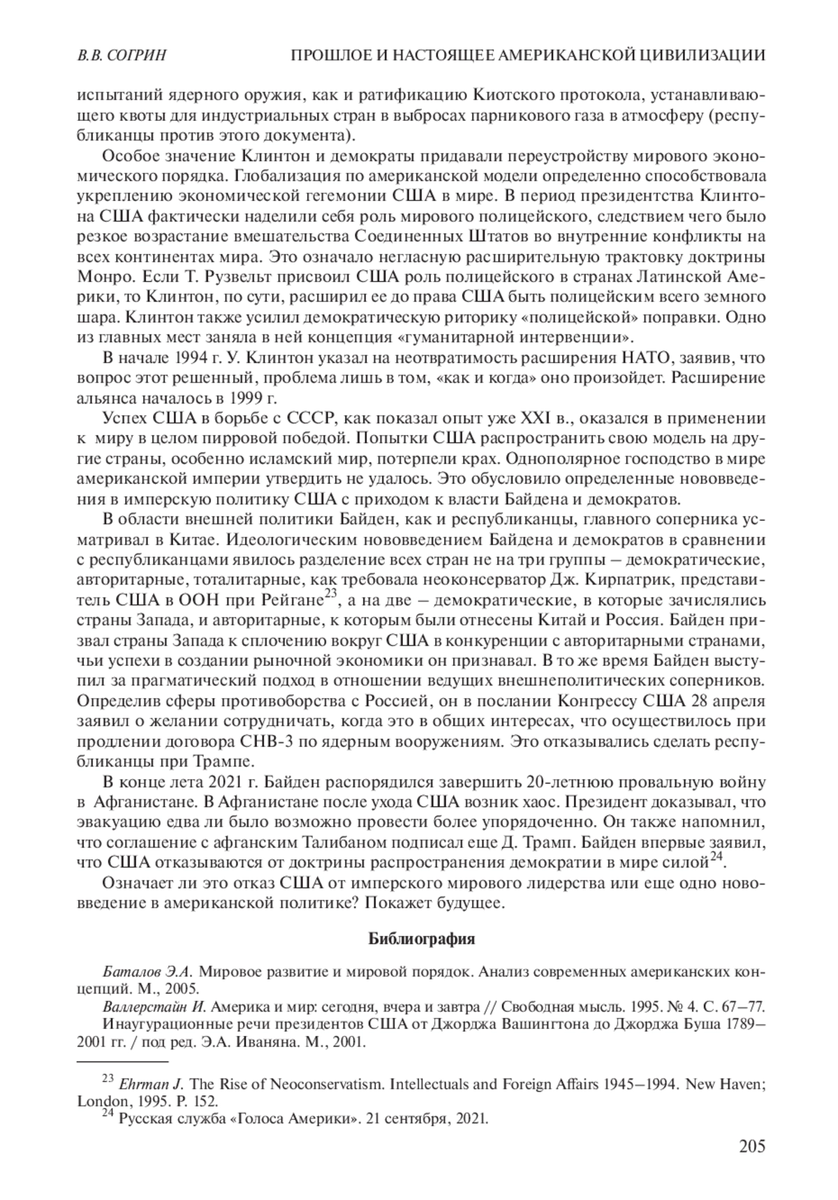 5. 	Согрин В.В. Американская цивилизация. М., 2020. EDN: TTKWUH
