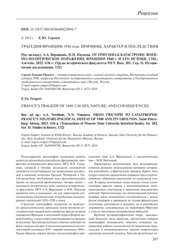Рецензируемая монография посвящена памяти одного из крупнейших российских франковедов, профессора исторического факультета МГУ В. П. Смирнова, который в течение нескольких десятилетий занимался плодотворными исследованиями внутренней и внешней политики Третьей, Четвертой и Пятой республик, опубликовав цикл фундаментальных трудов по указанной проблематике. Авторы книги – кандидаты исторических наук, доценты исторического факультета МГУ А. А. Вершинин и Н. Н. Наумова являются хотя и молодыми, но уже известными отечественными специалистами по проблемам международных отношений 1920–1930-х годов
