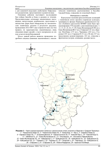 22. 	Можаева А.А. Каменная индустрия энеолитической стоянки Чашкинское Озеро II (по материалам раскопок 2021-2022 гг.) // Вестник научной ассоциации студентов и аспирантов исторического факультета Пермского государственного гуманитарно-педагогического университета. Stadia Historica Jenium. 2023. № 1 (19). С. 21-31.