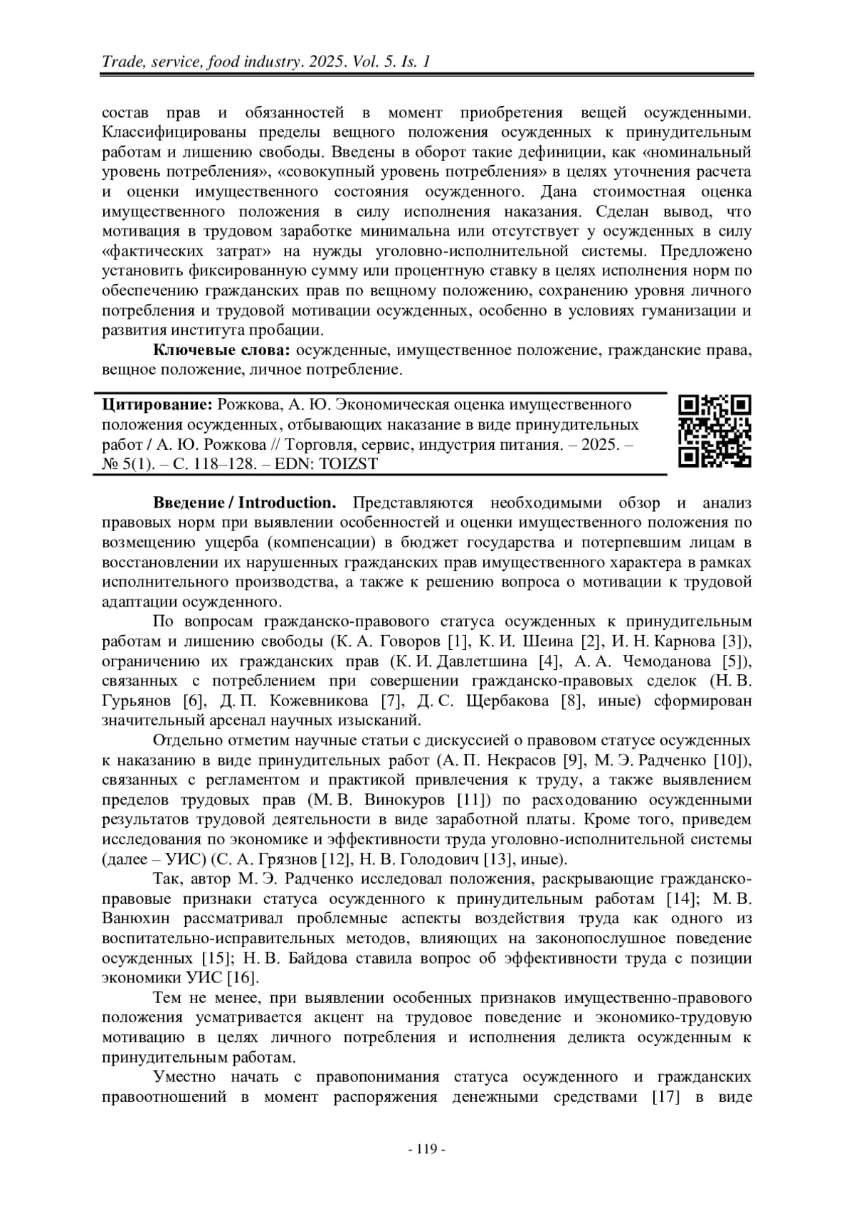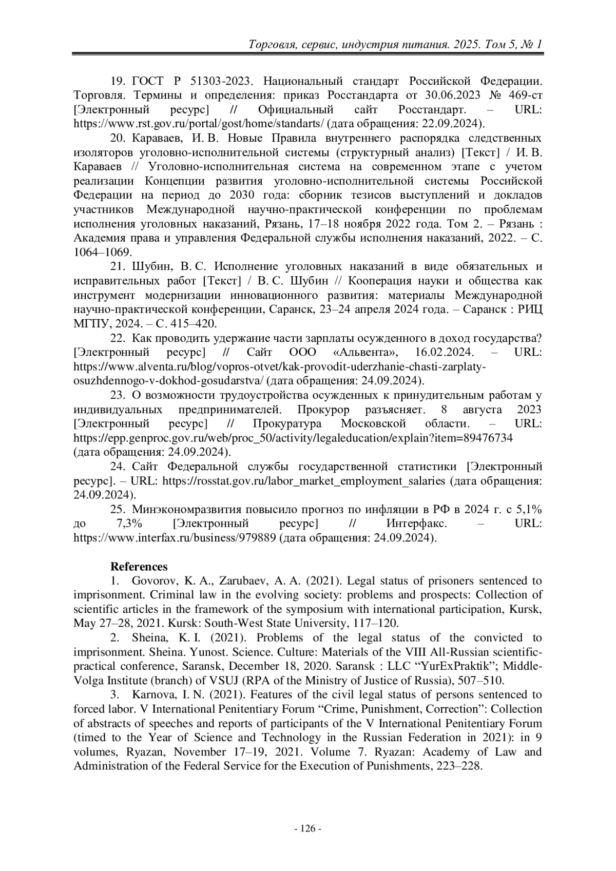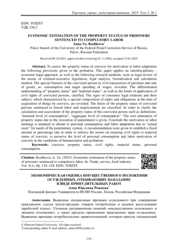 12. Грязнов, С. А. Экономическая эффективность труда осужденных [Текст] / С. А. Грязнов // Право, экономика и управление: актуальные вопросы: сборник материалов Всероссийской научно-практической конференции, Чебоксары, 08 октября 2021 года. – Чебоксары: Издательский дом «Среда», 2021. – С. 18–22.