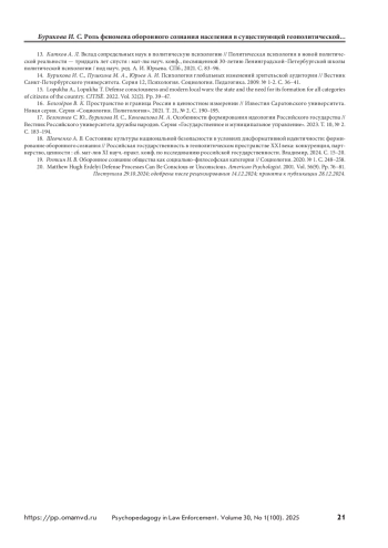 19. Роткин Н. В. Оборонное сознание общества как социально-философская категория // Социология. 2020. № 1. С. 248–258.