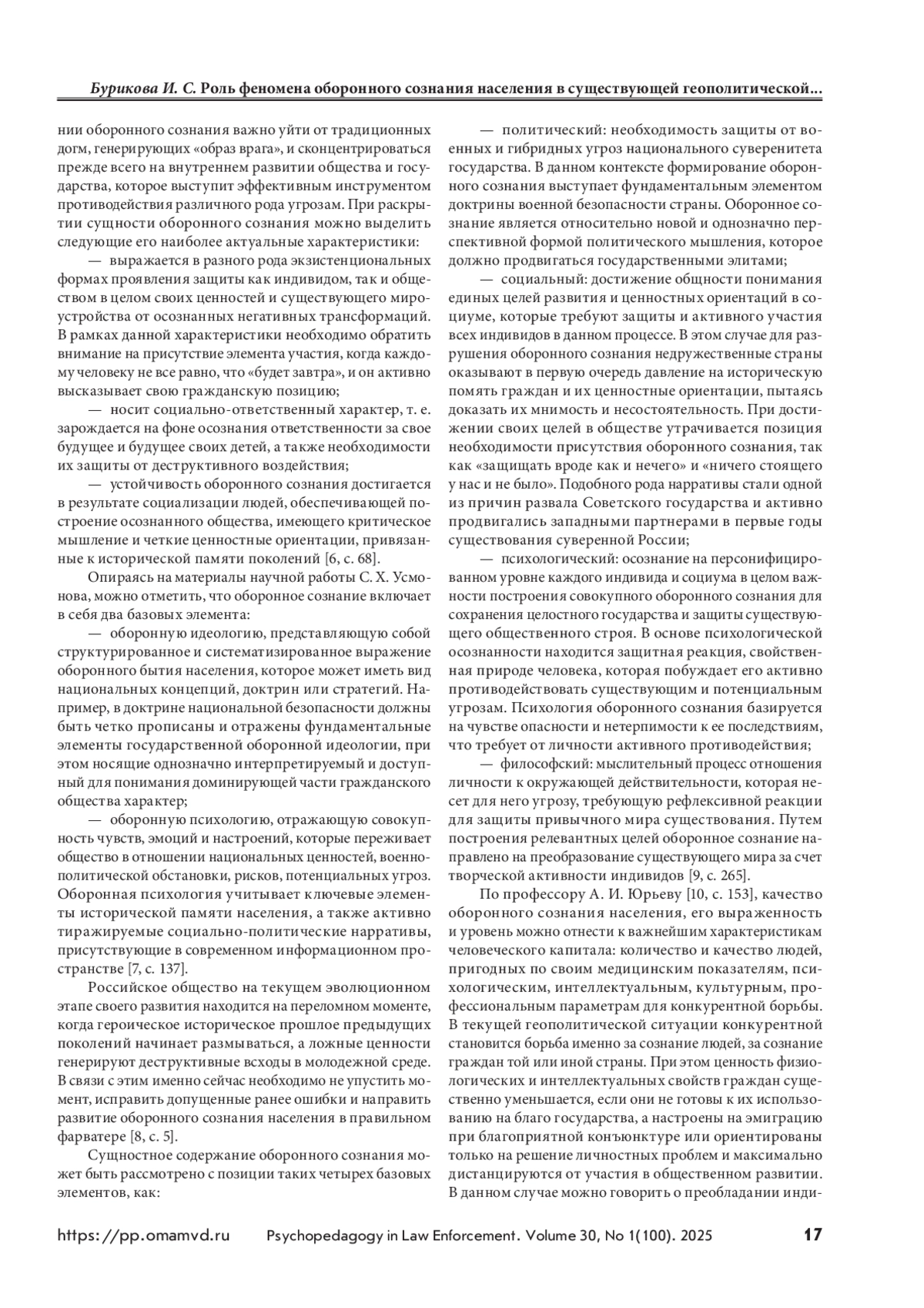 7. Усмонов С. Х. Социально-философские аспекты сущности оборонного сознания // Известия Института философии, политологии и права имени А. Баховаддинова Национальной академии наук Таджикистана. 2020. № 3. С. 135–139.
