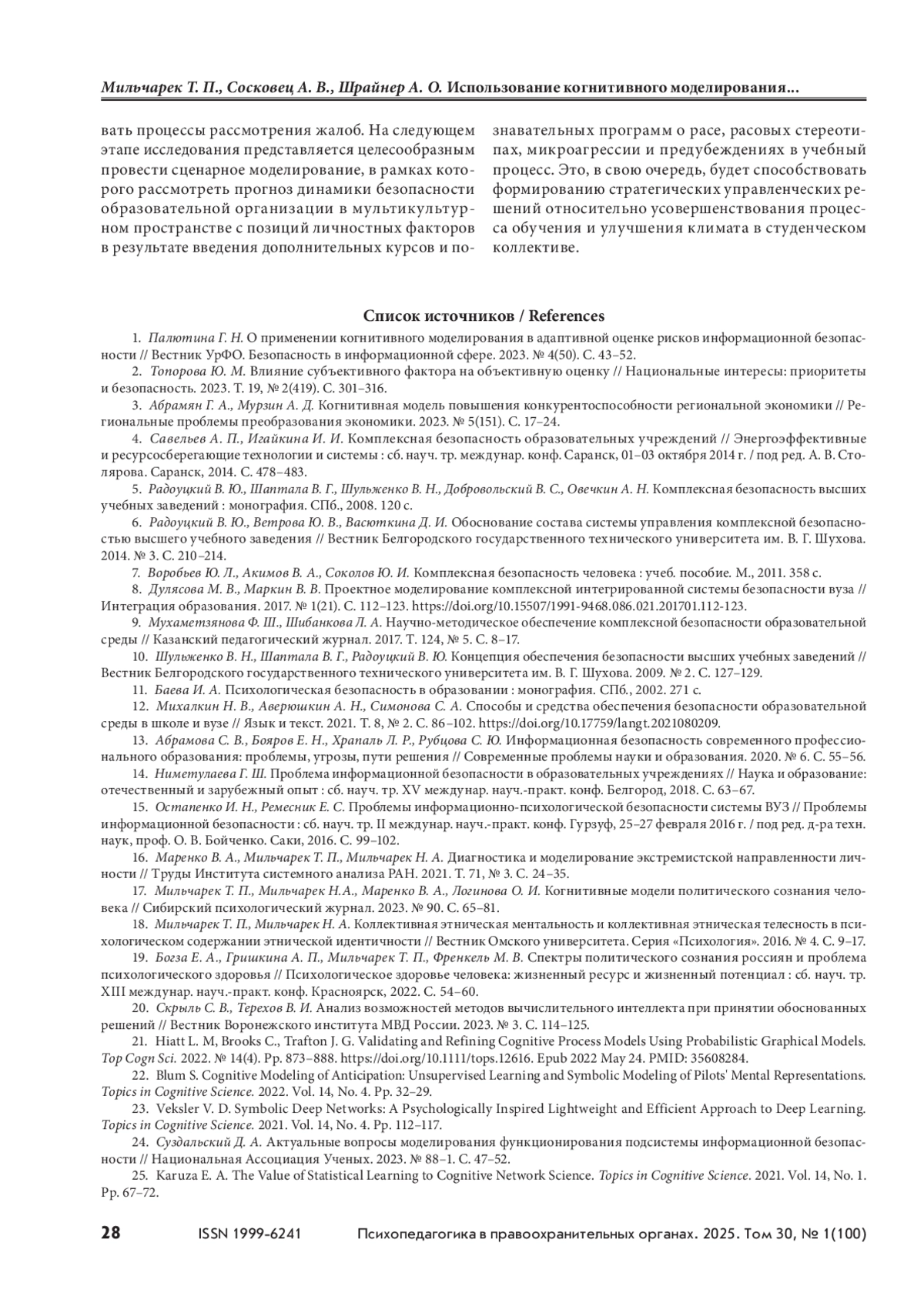 12. Михалкин Н. В., Аверюшкин А. Н., Симонова С. А. Способы и средства обеспечения безопасности образовательной среды в школе и вузе // Язык и текст. 2021. Т. 8, № 2. С. 86–102. https://doi.оrg/10.17759/langt.2021080209.