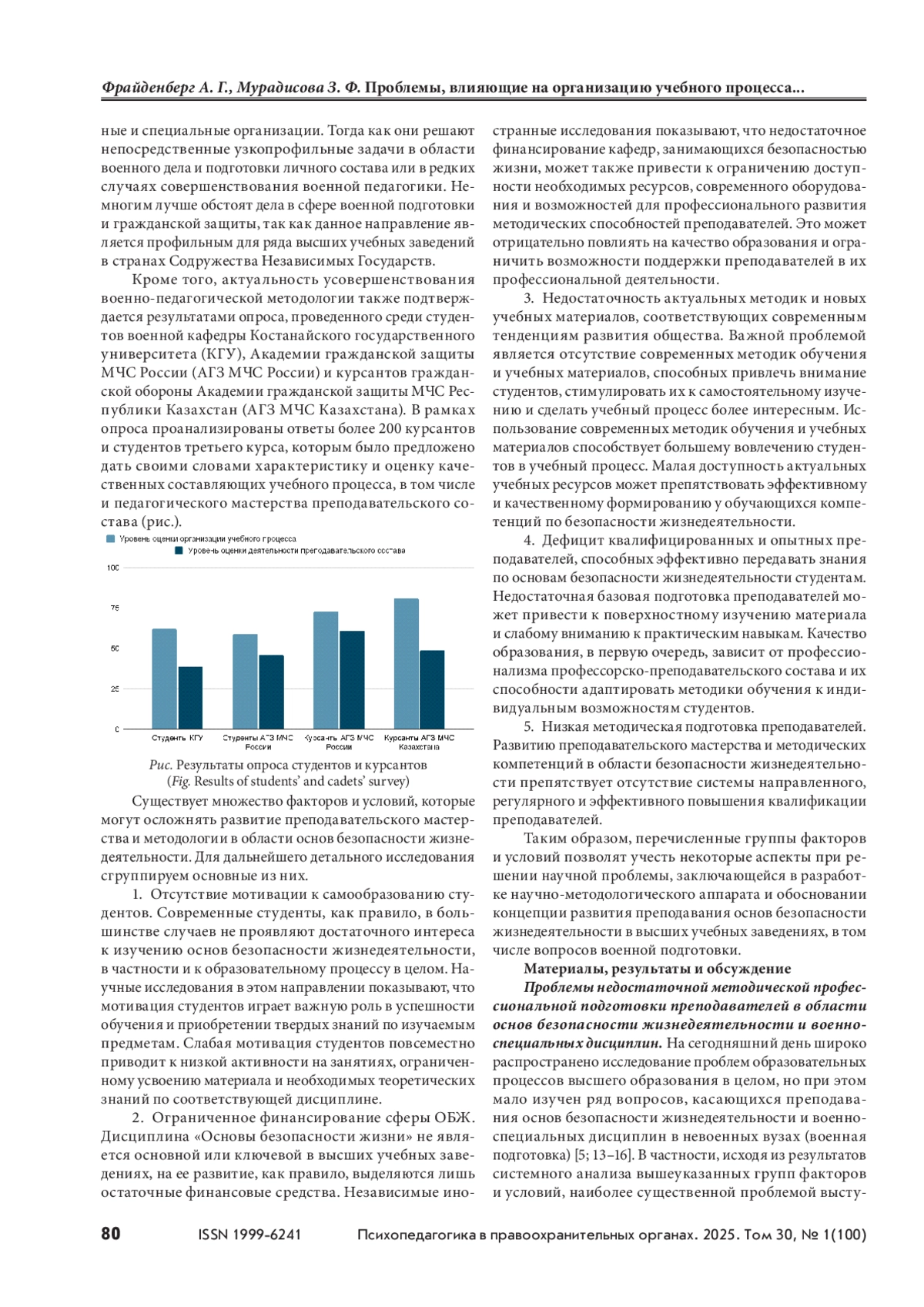 5. Сушанский А. С., Фрайденберг А. Г., Фрайденберг О. С. Анализ проблемы стимулирования и мотивации подготовки преподавателей образовательных учреждений Костанайской области Республики Казахстан в сфере гражданской защиты // ГосРег: государственное регулирование общественных отношений. 2020. № 1(31). С. 163–166.