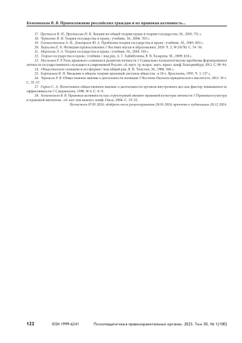 13. Реуф В. М., Сальников С. П. Правосознание как функция и функции правосознания // Вестник Академии экономической безопасности МВД России. 2009. № 12. С. 50–57.