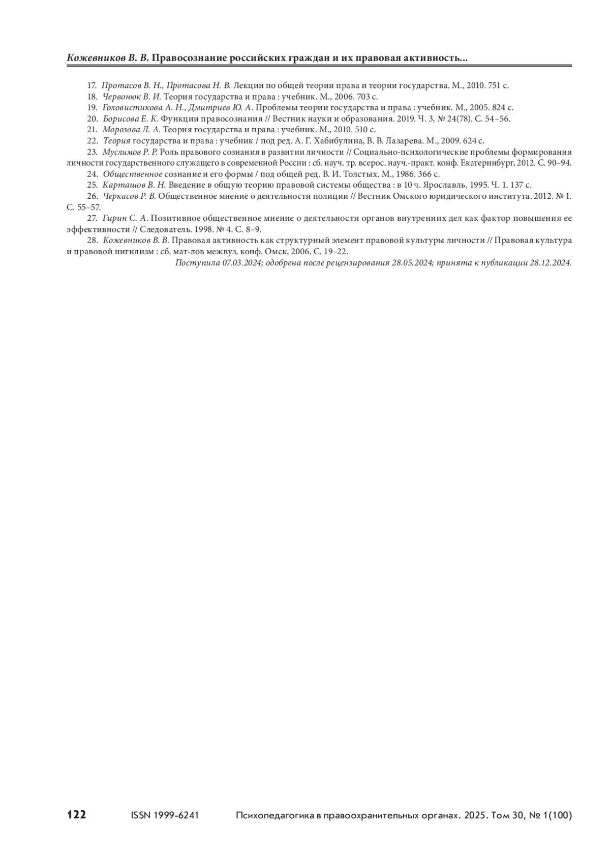 23. Муслимов Р. Р. Роль правового сознания в развитии личности // Социально-психологические проблемы формирования личности государственного служащего в современной России : сб. науч. тр. всерос. науч.-практ. конф. Екатеринбург, 2012. С. 90–94.