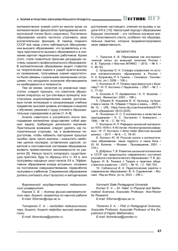 6. Понтрягин Л. С. О математике и качестве ее преподавания / Л. С. Понтрягин // Коммунист. -1980. - № 14. - C. 99-112.