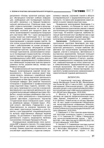 2. Вяткина И. В. Практико-ориентированное обучение как средство профессионализации подготовки будущих специалистов в университете / И. В. Вяткина // Новый взгляд на систему образования: сб. науч. трудов по материалам II Международной научно-практической конференции [Электронный ресурс].- URL: https://science.kuzstu.ru/wp-content/Events/Conference/nv/newview/pages/Articles/007.pdf (дата обращения: 16.05.2024).
