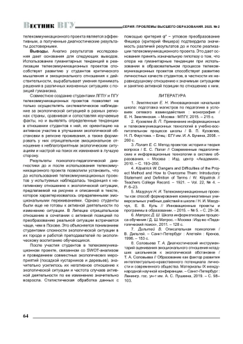 8. 	Соловьева Т. А. Диагностический инструментарий оценивания эмоционального отношения младших школьников к экологической обстановке / Т. А. Соловьева // Образование как фактор развития интеллектуально-нравственного потенциала личности и современного общества. Материалы IX международной научной конференции. - Санкт-Петербург: Ленингр. гос. ун-т им. А. С. Пушкина, 2019. - С. 98-103. EDN: KLUQYP