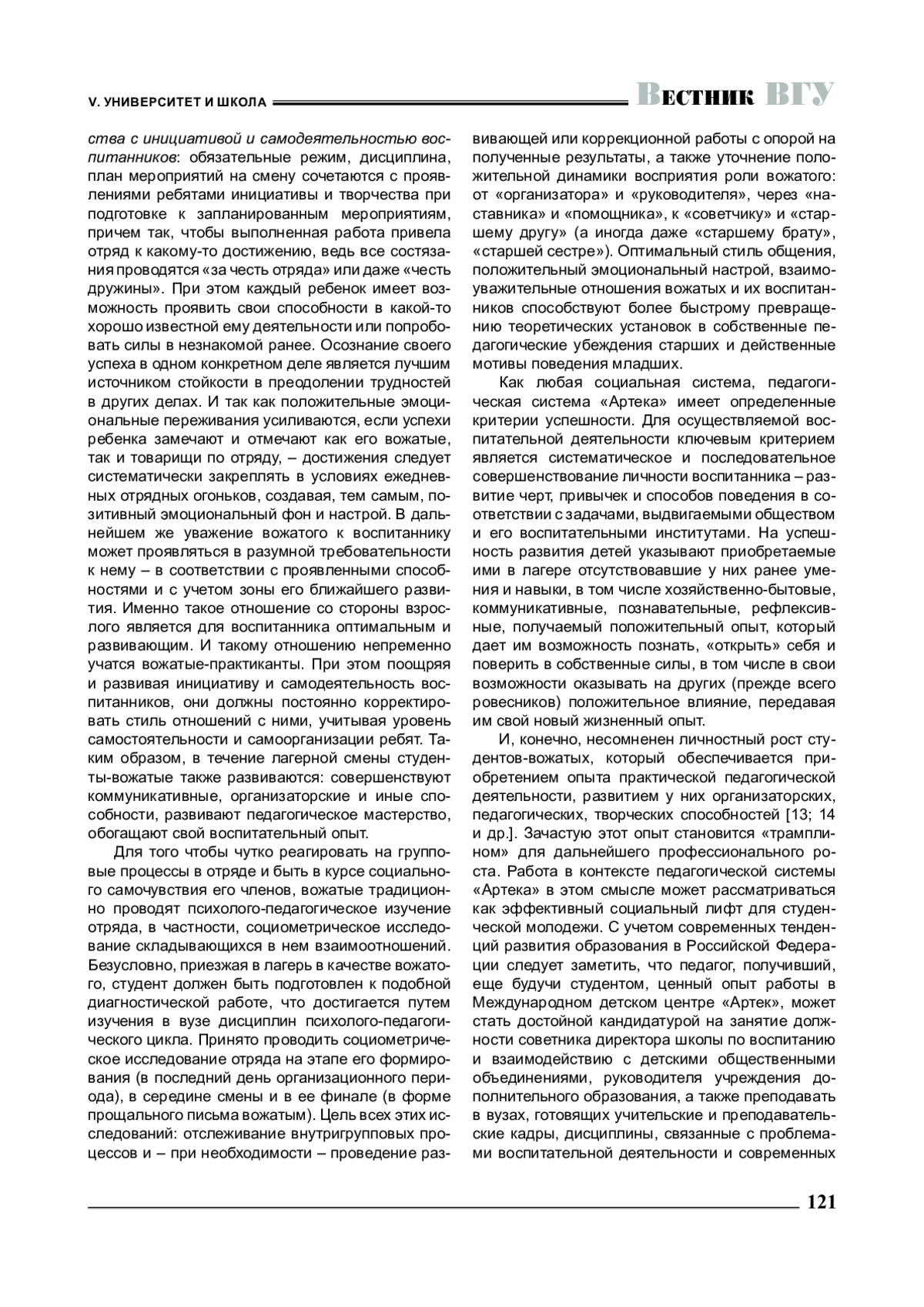 6. 	Воронкова Л. В. Педагогическое взаимодействие вожатого и детей в лагере / Л. В. Воронкова // Народное образование. - 2015. - № 2. - С. 191-197. EDN: TSFCAP
