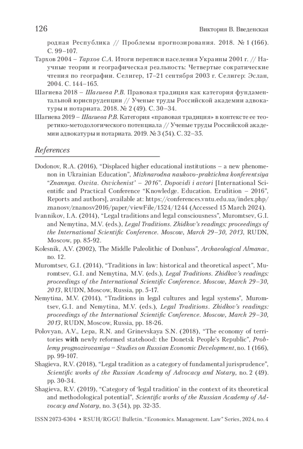 10. Шагиева 2018 - Шагиева Р.В. Правовая традиция как категория фундаментальной юриспруденции // Ученые труды Российской академии адвокатуры и нотариата. 2018. № 2 (49). С. 30-34.