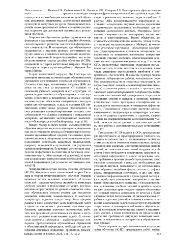 14. 	Van Merriënboer J.J.G., Sweller J. Cognitive load theory and complex learning: recent developments and future directions // Educational Psychology Review. 2005. Vol. 17, № 2. P. 147-178. DOI: 10.1007/s10648-005-3951-0 EDN: RLQKKN