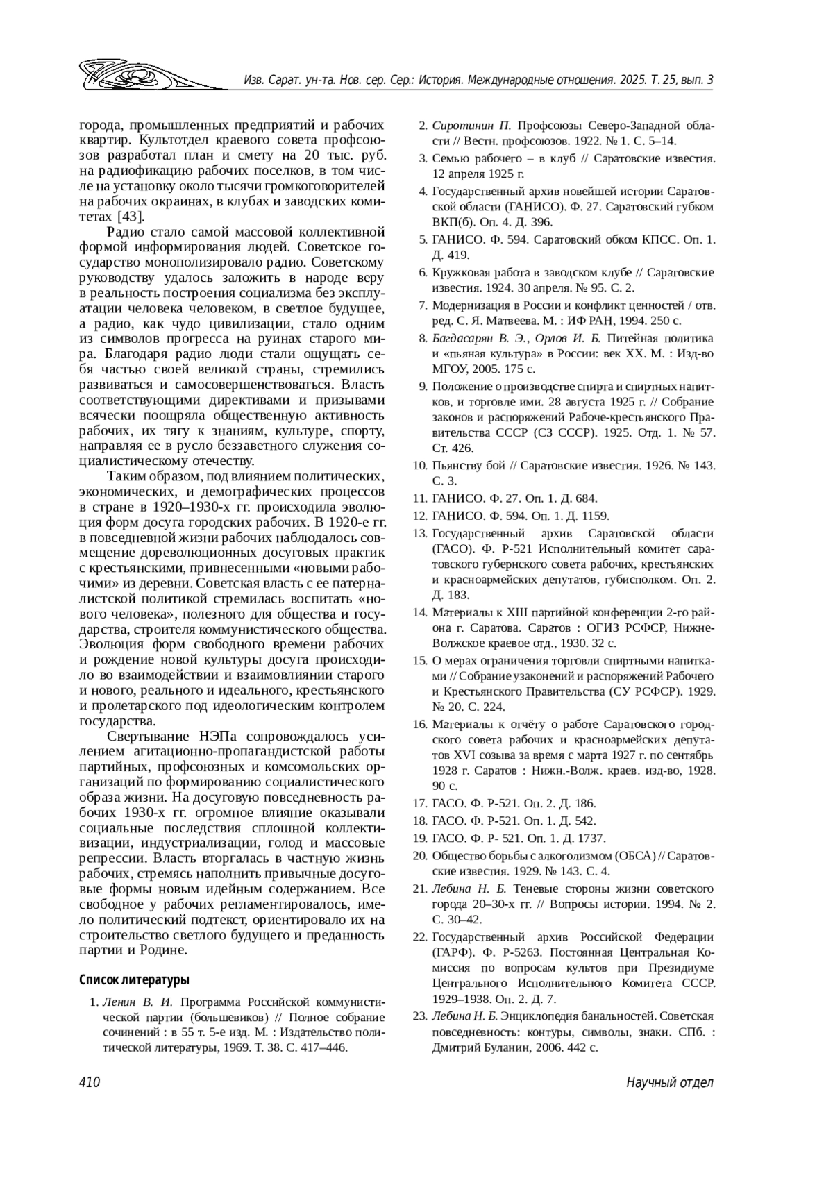 21. 	Лебина Н. Б. Теневые стороны жизни советского города 20-30-х гг. // Вопросы истории. 1994. № 2. С. 30-42.