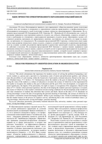 7. Лисеенко В.И. Особенности личностно ориентированного образования в вузе: формы реализации, особенности, проблемы // Молодой ученый. 2017. № 15 (149). С. 530-536. EDN: YLNTQL