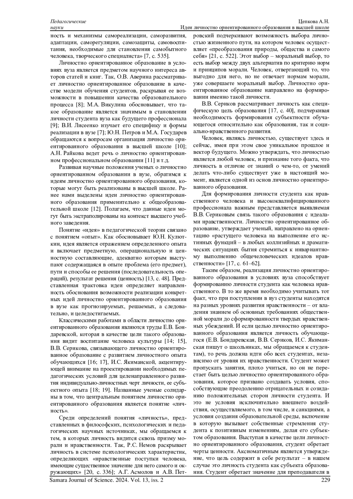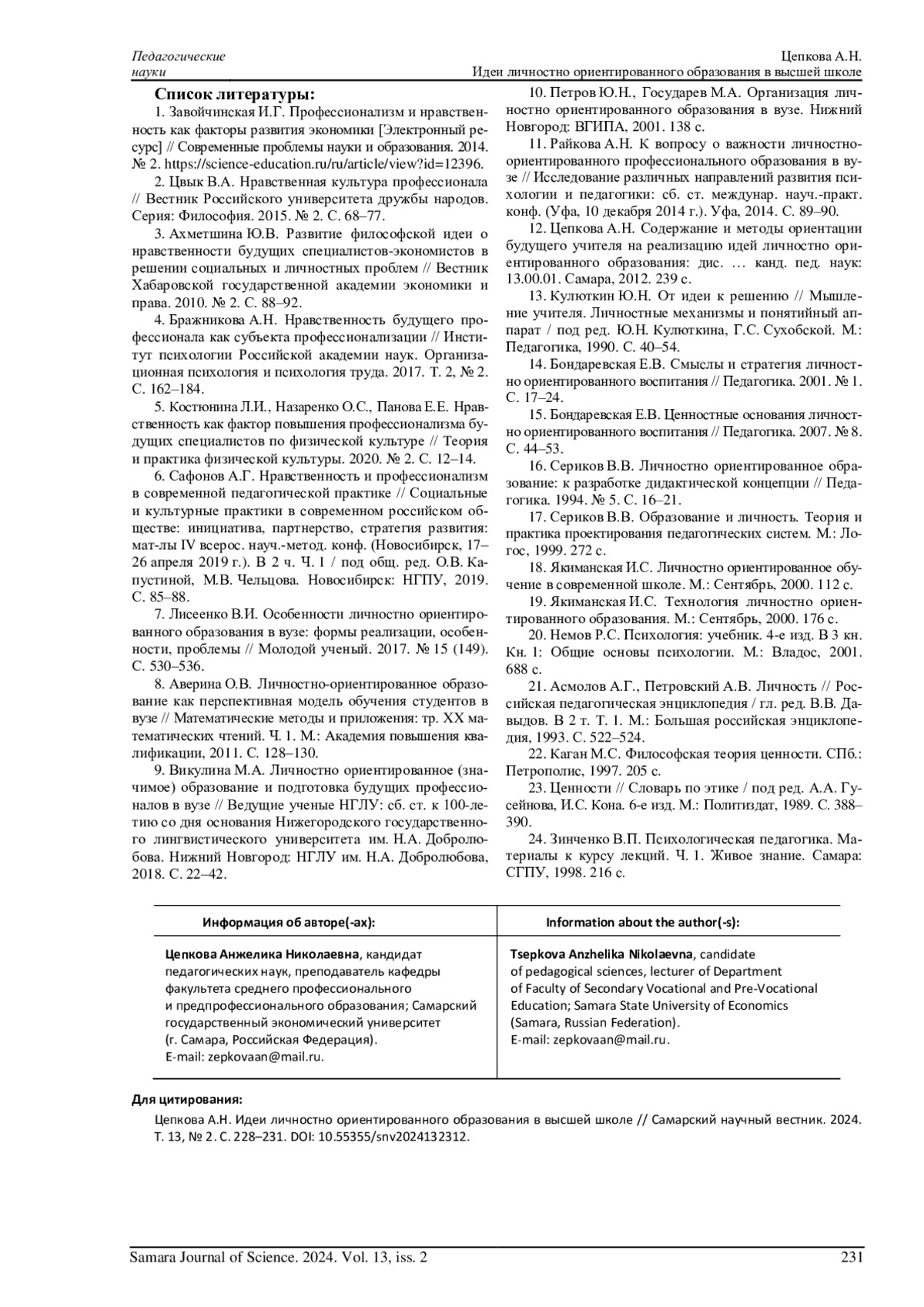 12. Цепкова А.Н. Содержание и методы ориентации будущего учителя на реализацию идей личностно ориентированного образования: дис. … канд. пед. наук: 13.00.01. Самара, 2012. 239 с. EDN: QFYJAF
