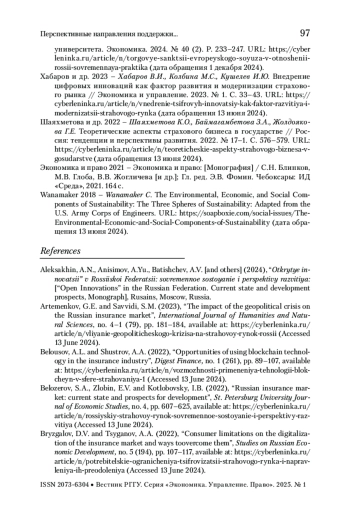 2. Белозеров и др. 2022 - Белозеров С.А., Злобин Е.В., Котлобовский И.Б. Российский страховой рынок: современное состояние и перспективы развития // Вестник Санкт-Петербургского университета. Экономика. 2022. № 4. С. 607-625. URL: https://cyberleninka.ru/article/n/rossiyskiy-strahovoy-rynok-sovremennoe-sostoyanie-i-perspektivy-razvitiya (дата обращения 13 июня 2024).