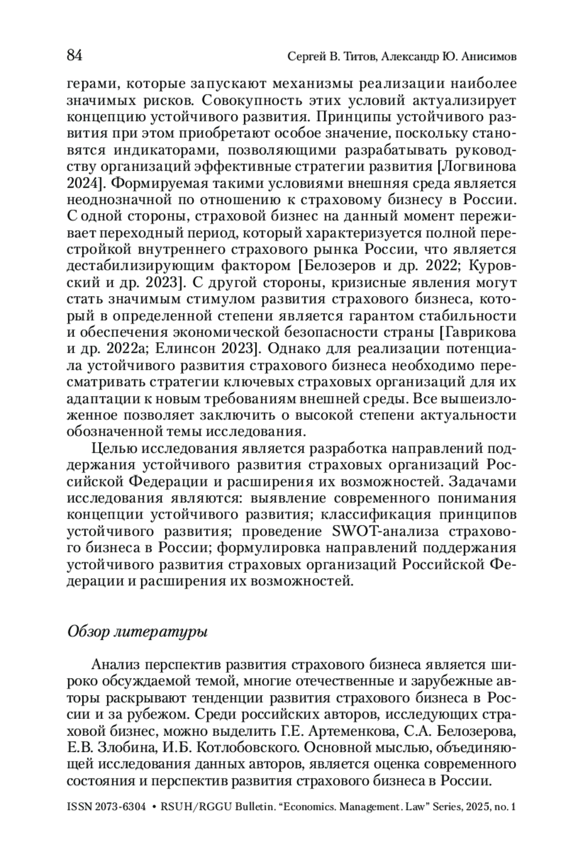 1. Артеменков, Саввиди 2023 - Артеменков Г.Е., Саввиди С.М. Влияние геополитического кризиса на страховой рынок России // Международный журнал гуманитарных и естественных наук. 2023. № 4-1 (79). С. 181-184. URL: https://cyberleninka.ru/article/n/vliyanie-geopoliticheskogo-krizisa-na-strahovoy-rynok-rossii (дата обращения 13 июня 2024).