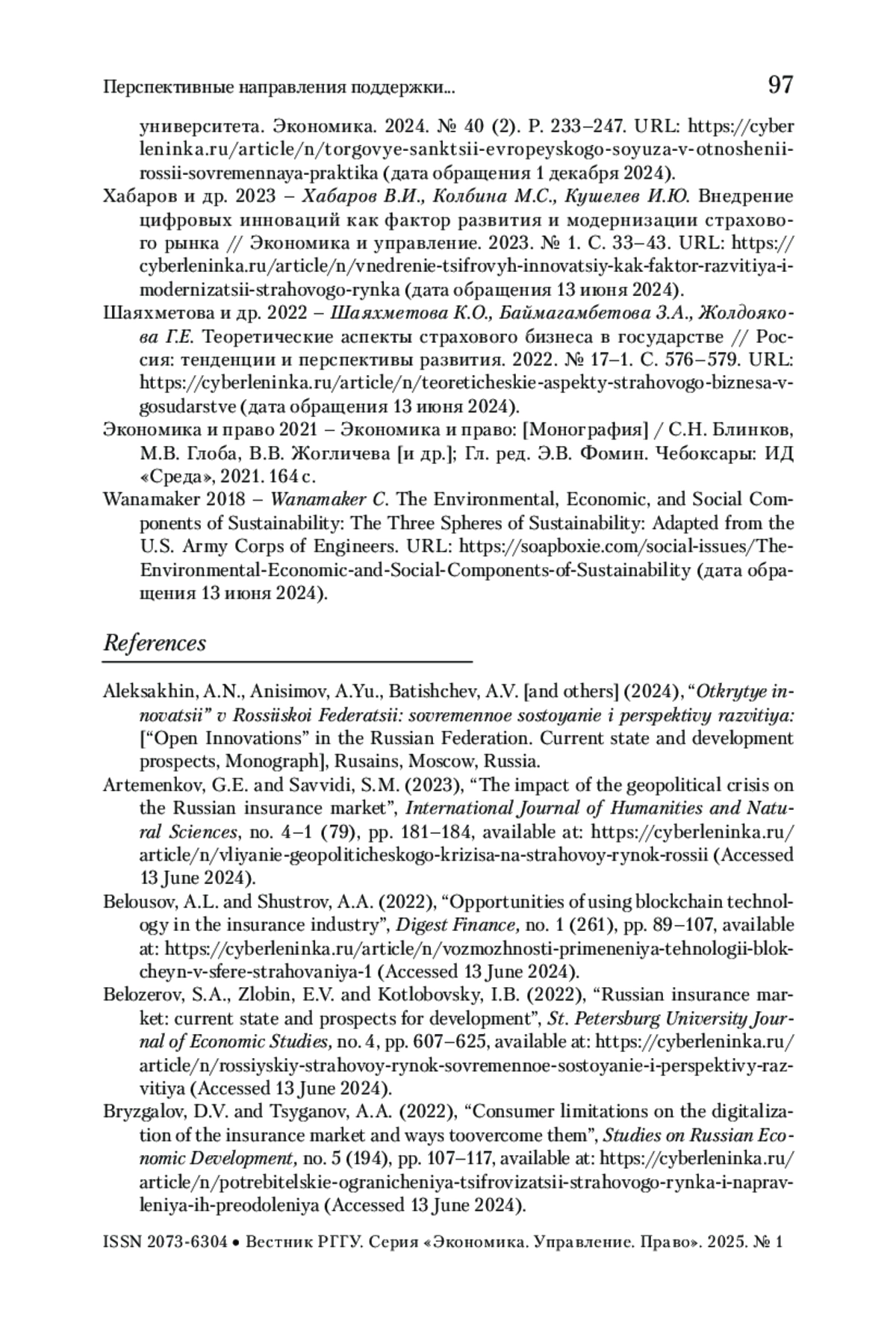 9. Куровский и др. 2023 - Куровский С.В., Кушелев И.Ю., Соснин Д.А., Мишин Д.А. Развитие инновационной деятельности страхового бизнеса // Инновации и инвестиции. 2023. № 10. С. 20-25. URL: https://cyberleninka.ru/article/n/razvitie-innovatsionnoy-deyatelnosti-strahovogo-biznesa (дата обращения 13 июня 2024).