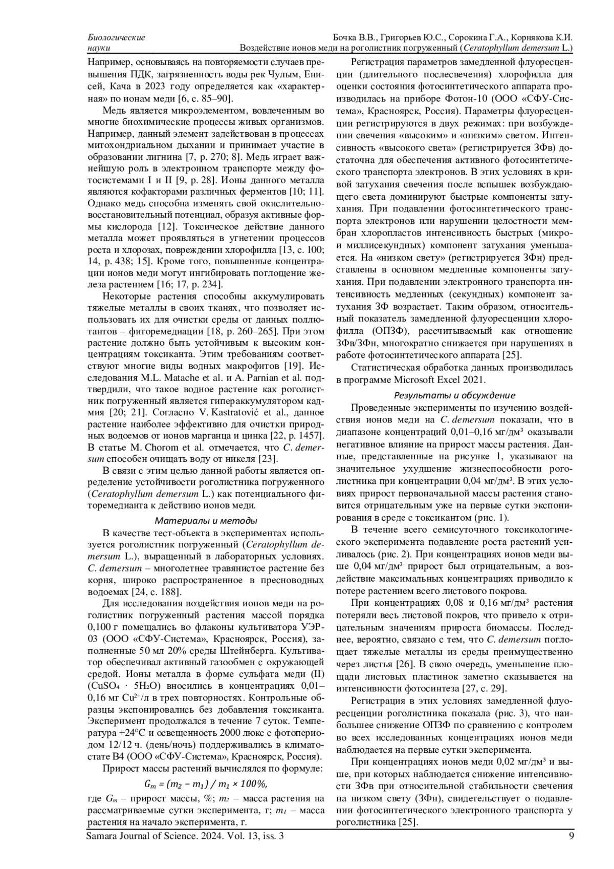 9. Thomas G., Stärk H.-J., Wellenreuther G., Dickinson B.C., Küpper H. Effects of nanomolar copper on water plants - comparison of biochemical and biophysical mechanisms of deficiency and sublethal toxicity under environmentally relevant conditions // Aquatic Toxicology. 2013. Vol. 140-141. P. 27-36. DOI: 10.1016/j.aquatox.2013.05.008