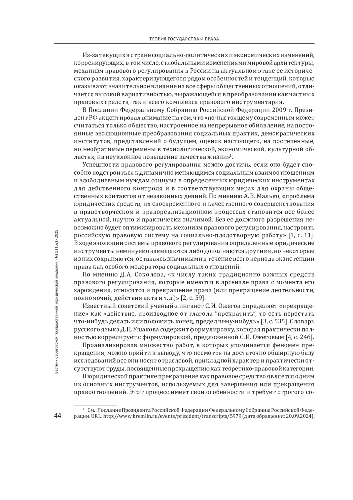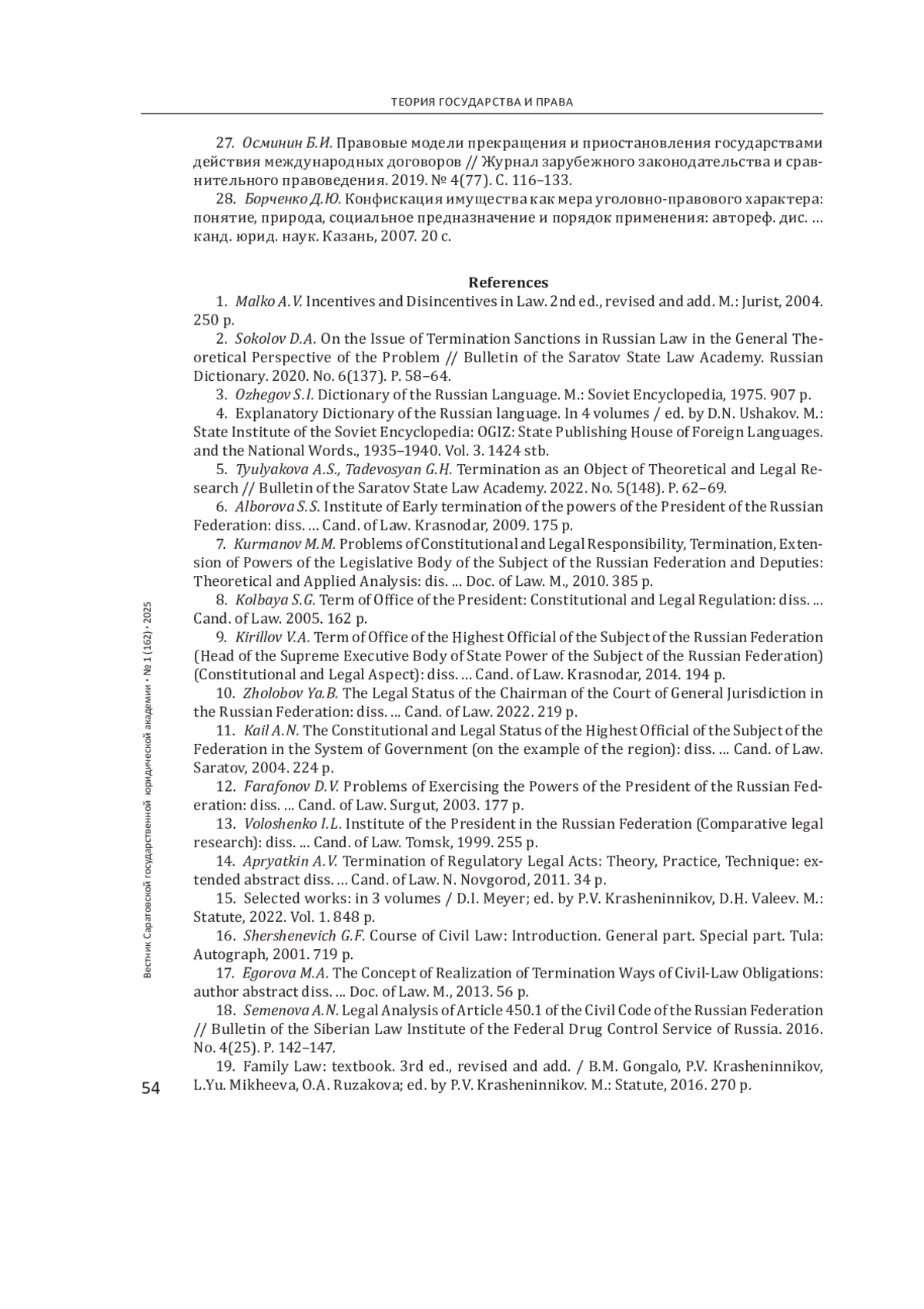 2. 	Соколов Д.А. К вопросу о санкции прекращения в российском праве в общетеоретическом ракурсе видения проблемы // Вестник Саратовской государственной юридической академии. 2020. № 6(137). С. 58-64.