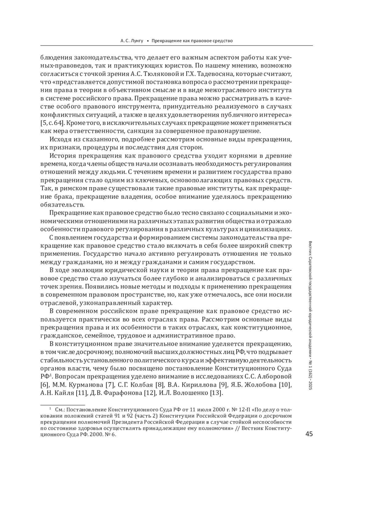 5. 	Тюлякова А.С., Тадевосян Г. Х. Прекращение как объект теоретико-правового исследования // Вестник Саратовской государственной юридической академии. 2022. № 5(148). С. 62-69.
