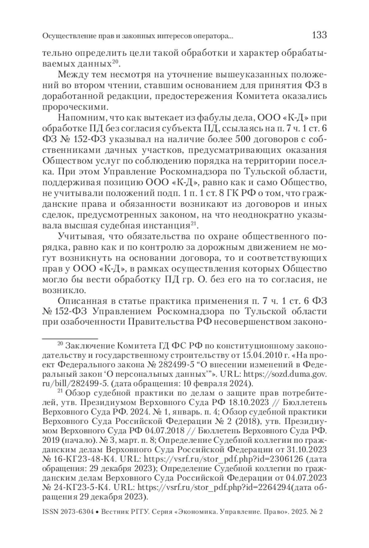 Статья представляет собой развернутый научно-практический комментарий положений п. 7 ч. 1 ст. 6 ФЗ № 152-ФЗ1, основанный на анализе доктрины и судебной практики в отношении таких институтов цивилистики, как субъективное гражданское право, законный интерес, осуществление субъективного права и законного интереса применительно к обработке персональных данных садовода без согласия последнего. Исследован правовой статус третьего лица во взаимосвязи с оператором персональных данных с позиций комментируемой нормы права, проанализированы и выделены императивные предписания исследуемой нормы с целью совершенствования правоприменения в практике деятельности операторов персональных данных на территории садоводств и управомоченного органа по защите прав субъектов персональных данных.
