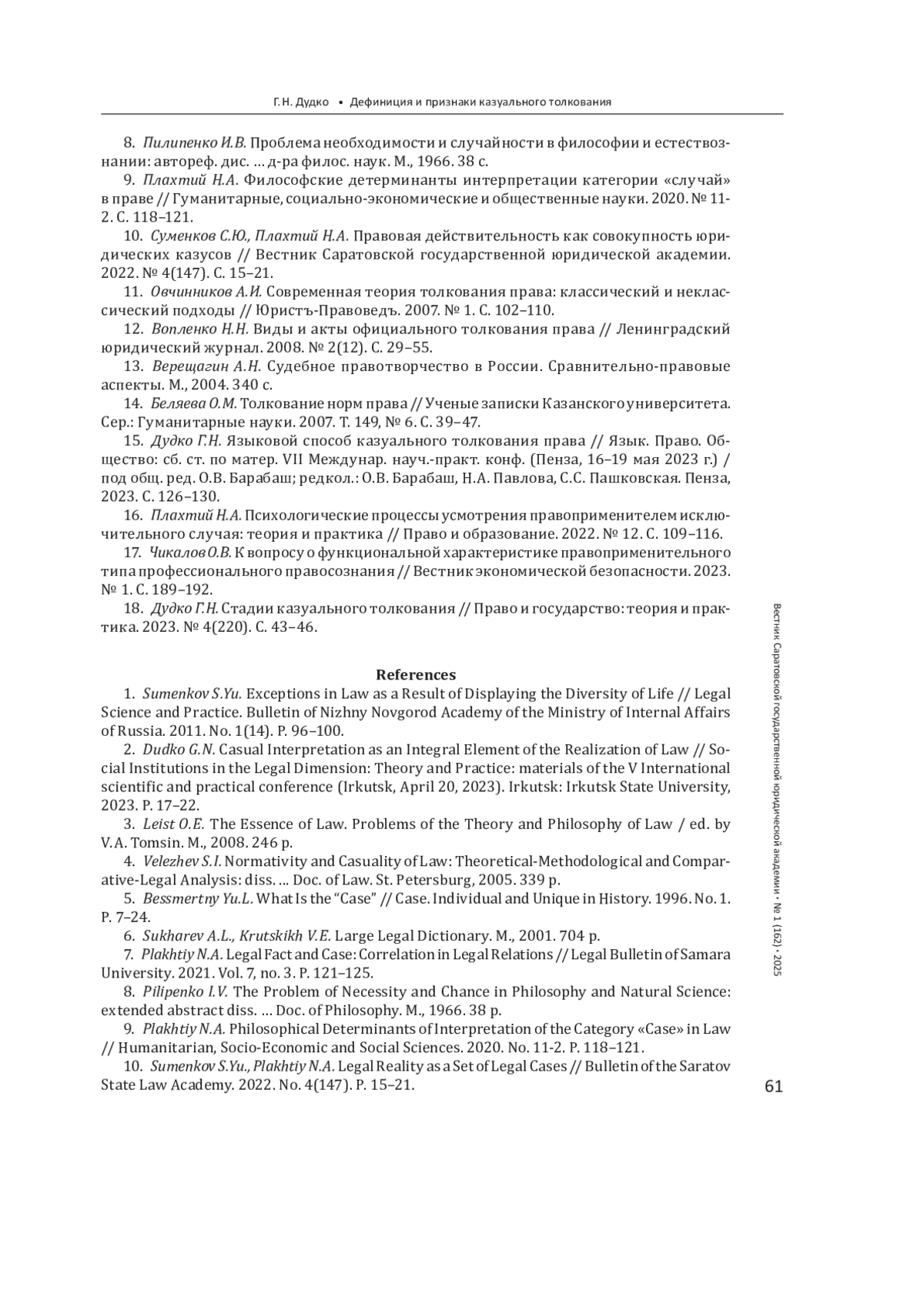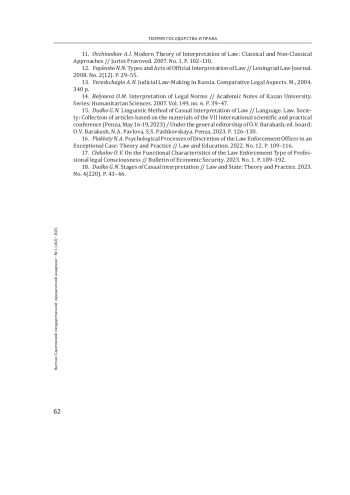 18. 	Дудко Г. Н. Стадии казуального толкования // Право и государство: теория и практика. 2023. № 4(220). С. 43-46.