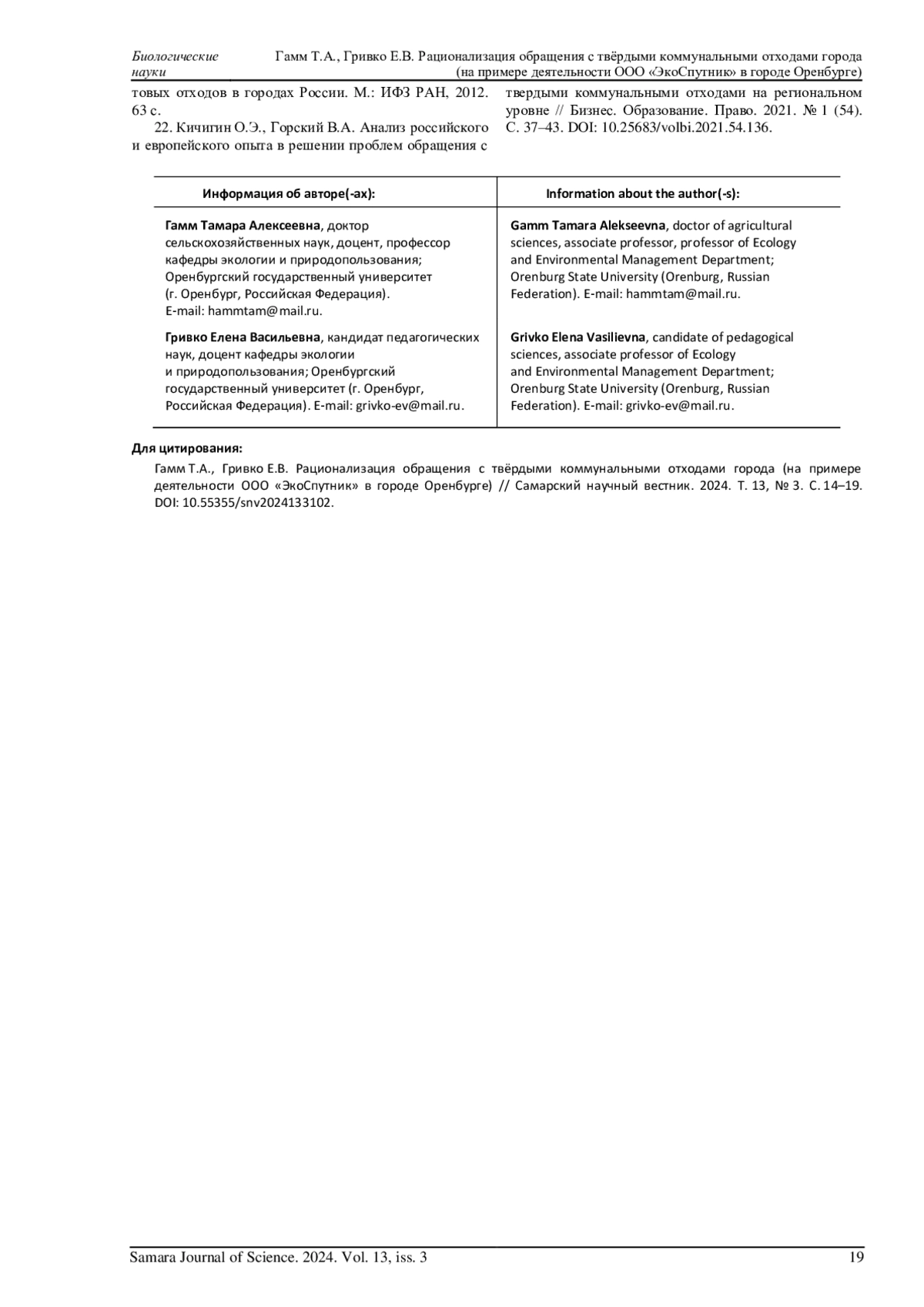 22. 	Кичигин О.Э., Горский В.А. Анализ российского и европейского опыта в решении проблем обращения с твердыми коммунальными отходами на региональном уровне // Бизнес. Образование. Право. 2021. № 1 (54). С. 37-43. DOI: 10.25683/volbi.2021.54.136 EDN: HETWFV