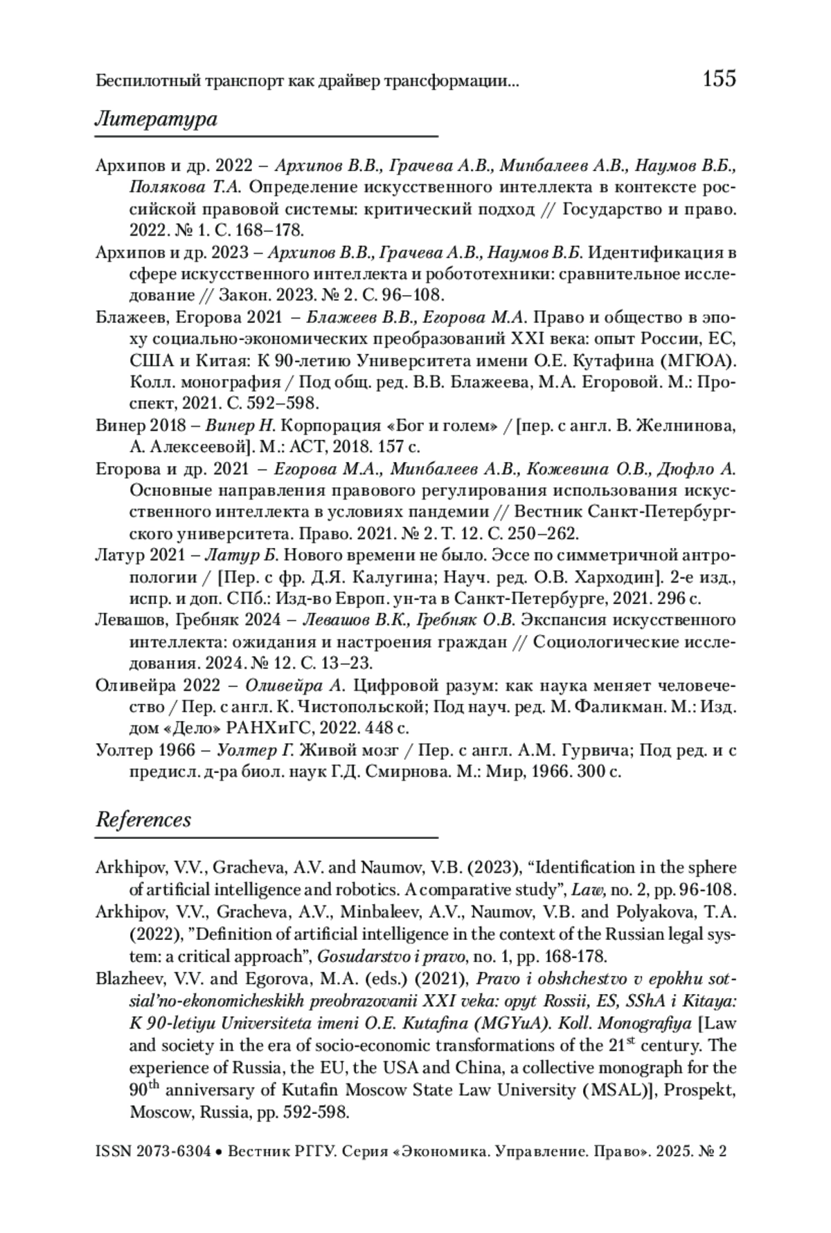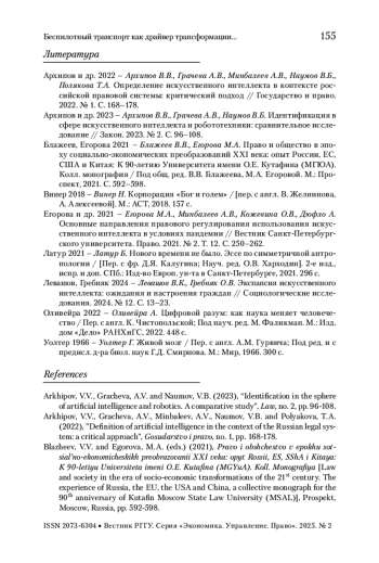 2. Архипов и др. 2023 - Архипов В.В., Грачева А.В., Наумов В.Б. Идентификация в сфере искусственного интеллекта и робототехники: сравнительное исследование // Закон. 2023. № 2. С. 96-108.
