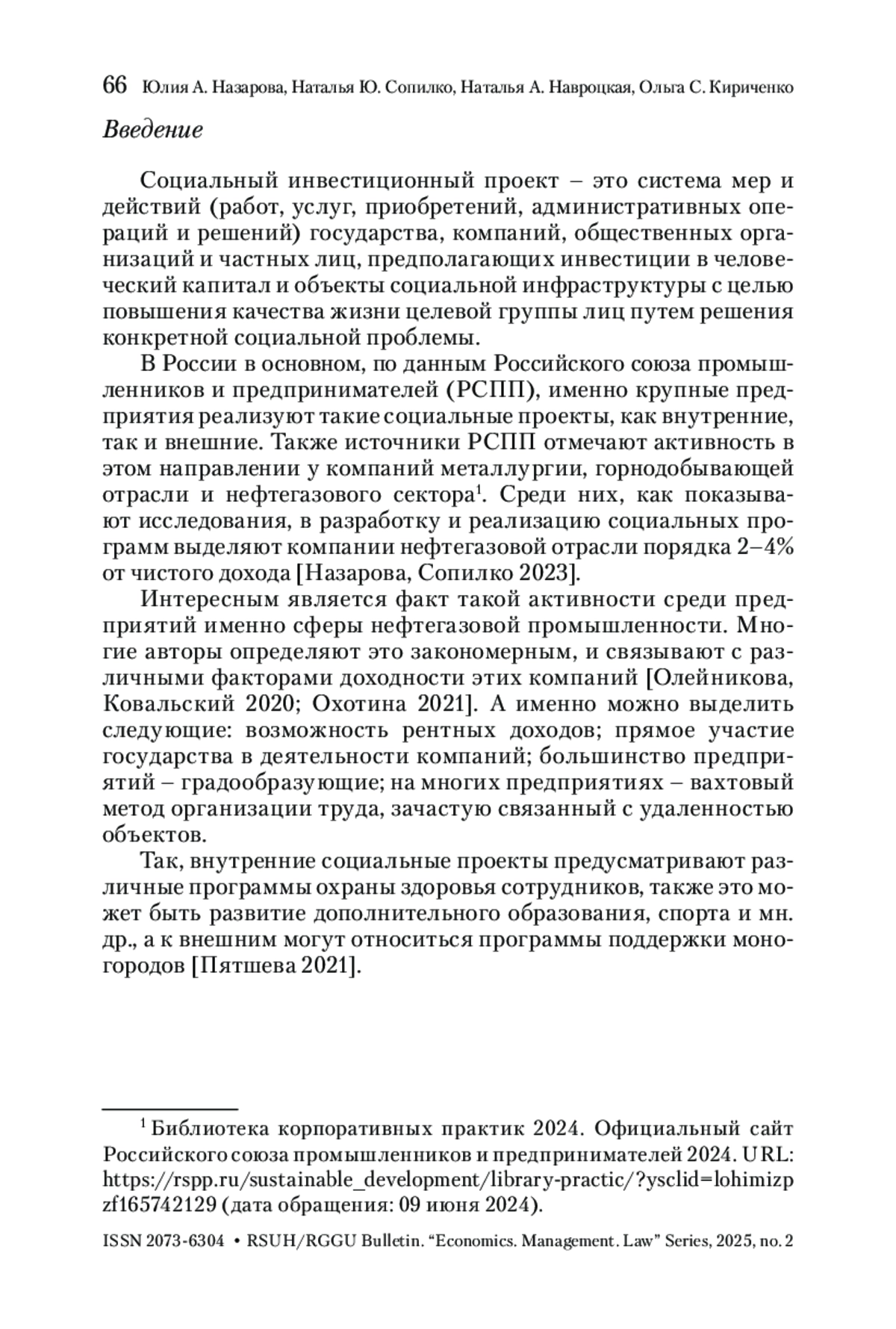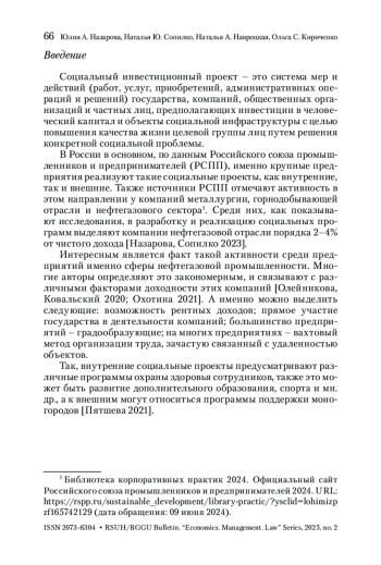 5. Назарова, Сопилко 2023 - Назарова Ю.А., Сопилко Н.Ю. Социальные инвестиционные проекты нефтегазовых компаний: сущность и направление реализации // Корпоративное управление и инновационное развитие экономики Севера: Вестник Научно-исследовательского центра корпоративного права, управления и венчурного инвестирования Сыктывкарского государственного университета. 2023. Т. 3. № 4. С. 519-528. https://doi.org/10.34130/2070-4992-2023-3-4-519.