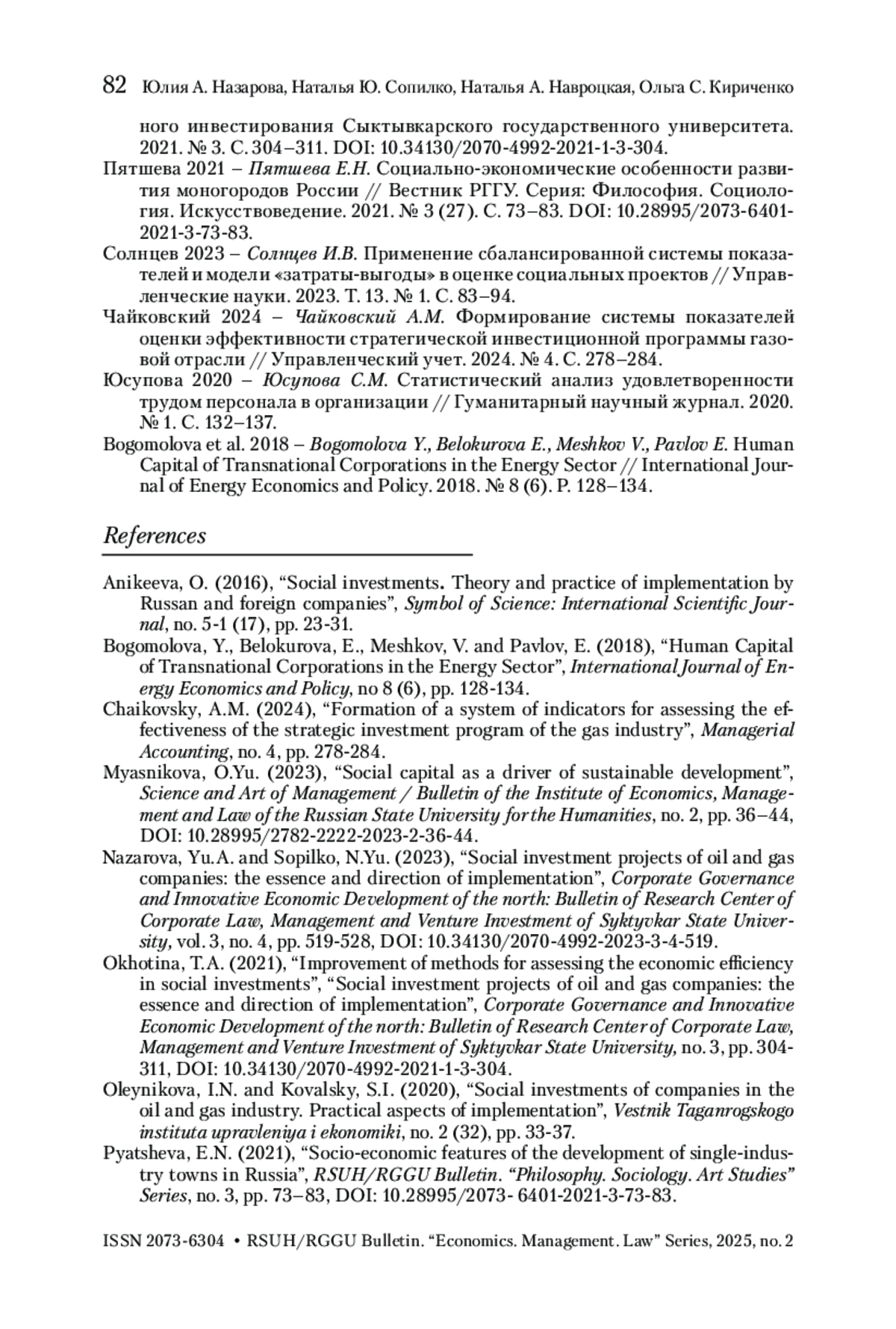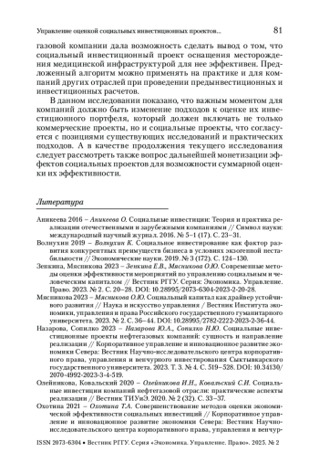 6. Олейникова, Ковальский 2020 - Олейникова И.Н., Ковальский С.И. Социальные инвестиции компаний нефтегазовой отрасли: практические аспекты реализации // Вестник ТИУиЭ. 2020. № 2 (32). C. 33-37.