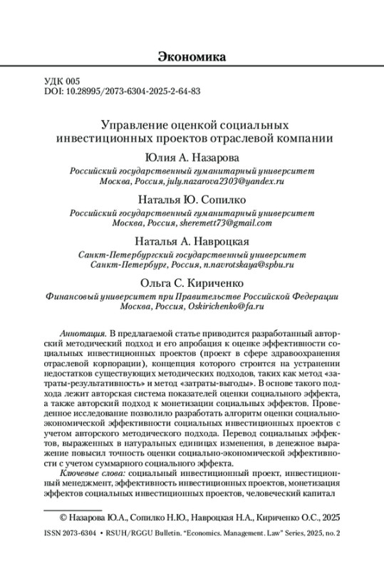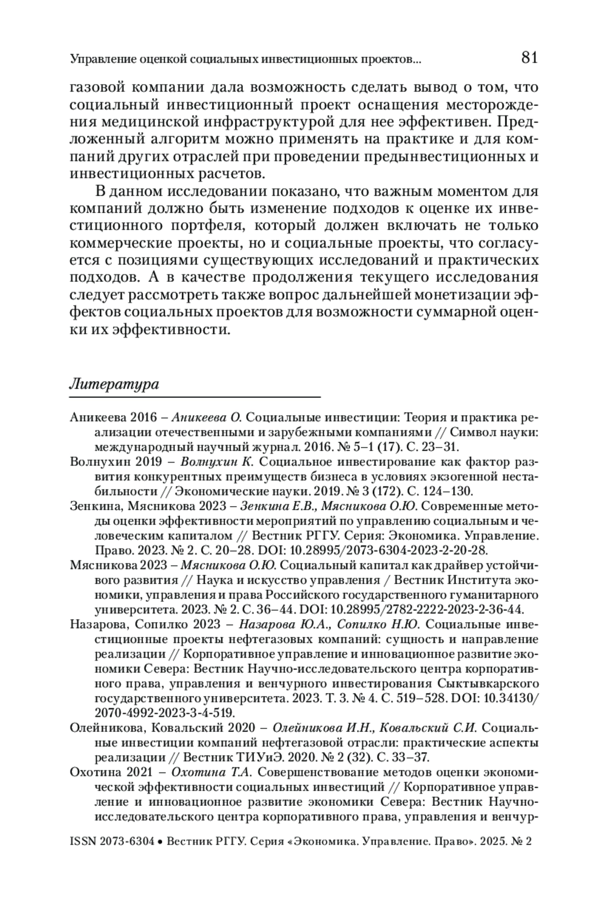 7. Охотина 2021 - Охотина Т.А. Совершенствование методов оценки экономической эффективности социальных инвестиций // Корпоративное управление и инновационное развитие экономики Севера: Вестник Научно-исследовательского центра корпоративного права, управления и венчурного инвестирования Сыктывкарского государственного университета. 2021. № 3. С. 304-311. https://doi.org/10.34130/2070-4992-2021-1-3-304.