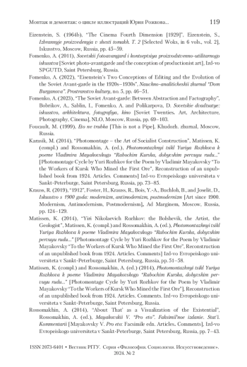 13. Фоменко 2023 - Фоменко А. Советский фотоавангард: между абстракцией и фактографией // Бобриков А., Саблин И., Фоменко А., Поликарпова Д. Советские двадцатые: искусство, архитектура, фотография, кино. М.: НЛО, 2023. С. 69- 103.