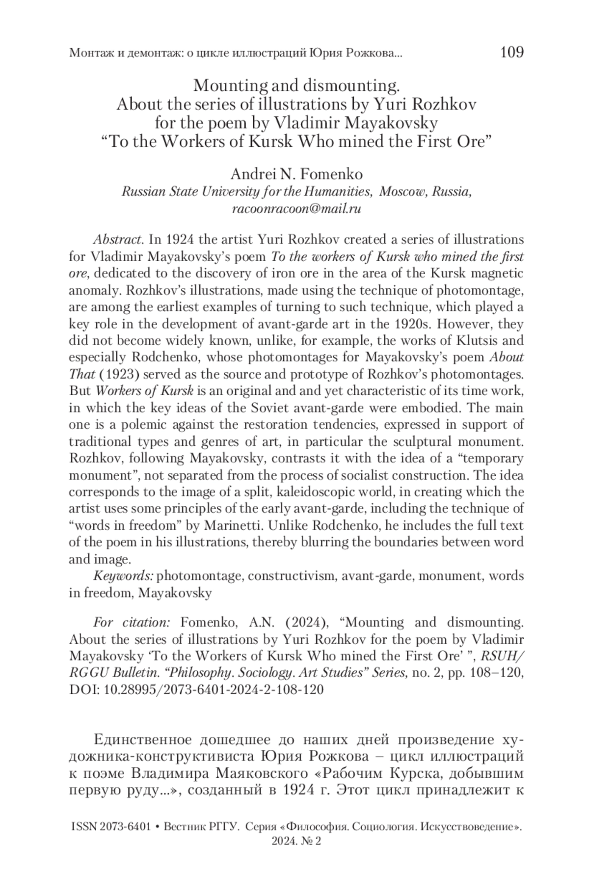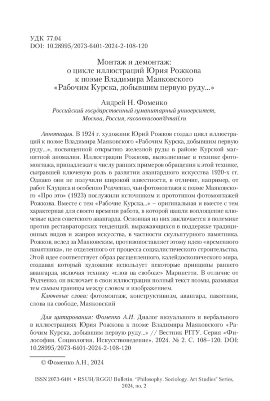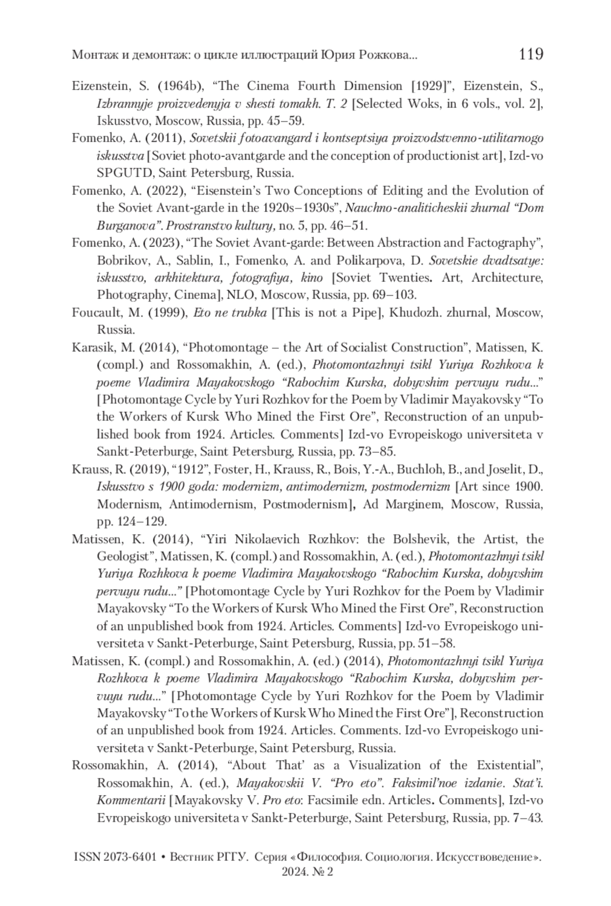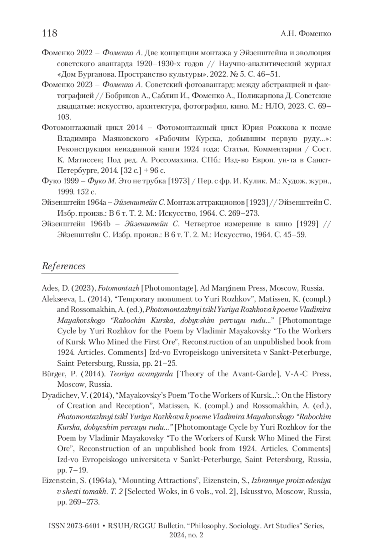 12. Фоменко 2022 - Фоменко А. Две концепции монтажа у Эйзенштейна и эволюция советского авангарда 1920-1930-х годов // Научно-аналитический журнал «Дом Бурганова. Пространство культуры». 2022. № 5. С. 46-51.
